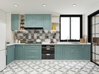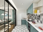 用一抹绿色妆点,让空间如沐春风。清爽通透的厨房给这个家带来愉悦的心情。白色瓷砖搭配定制的清新的薄荷绿橱柜,让厨房的整个空间明亮又有质感。浅灰色调的墙面花纹砖做点缀,氛围轻松自然,营造出一个有情调的烹饪空间。
