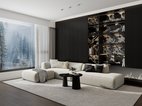 “墨韵”室内设计方案以简洁而高雅的黑白配色为基础,通过细腻的纹理和精巧的摆设,营造出宁静且富有韵味的空间。大面积的落地窗引入自然光线,与室内柔和的灯光相互映衬,增强了空间的通透感和温暖氛围。设计中运用了大量的自然元素,如木质地板和天然石材,赋予空间以自然之美。同时,独特的书架设计不仅增加了视觉层次感,还为生活增添了一份文化气息。整体设计旨在创造一个兼具舒适与艺术感的生活空间,让居住者在静谧优雅的环境中感受到古典与现代的和谐共存。