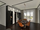 1.现代简约风格,加入轻奢元素,显得别具一格 2.黑白配色酒柜,显得大气 3.墙面装入嵌入式灯带,更显科技感