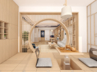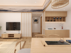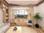 想要营造出日式禅意的客厅,客厅一定要以实木元素为主,原木色家具为辅。当清早的阳光洒入室内,远处的绿植透过木栅格,倒映着的窸窣的影子印在客厅的客厅角落,微风徐徐入堂。