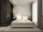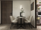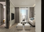 户型为两居室空间,功能完整,采光通透,适合小家庭居住,精致简易的装修效果,无主灯及暗藏灯带的设计及大理石元素的电视背景,空间更显高级时尚。整体设计以现代风格为主,能充分利用现有的装修条件,去融入较完整的设计语言。现代风格为一种多变的风格,可融汇更多的元素去达到不同的空间效果,此方案中充分的利用了现场大量的墙面留白,家具上多以纯色简约的造型,大理石的元素来营造一种富有现代新中式的气息,达到简洁舒适的同时,更富有一丝素雅,庄重的气息,更能符合中年群体的艺术追求。餐厅布置了一桌4椅,大理石台面,高档大气,纯色布艺餐椅保障更好的舒适性,沙发及主卧床为纯色皮质工艺,没有过多厚重繁杂的设计,也能显得端庄高雅,抱枕及地毯上融入了一丝淡蓝色为点缀,空间更具有层次的同时,新中式的韵味更显浓郁。 次卧室为儿童房空间,配备了书桌椅,中性的搭配设计,适合男女孩及不同年龄段居住使用。整体空间在现代风格的基础上,融入中式的元素,旨在体现一种素雅禅意的空间意境。