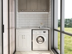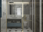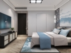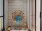 原木色木纹砖,搭配蓝色的软装,在整个素雅的空间中,让人眼前一亮