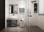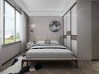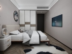 以简单的白色,与朴素的中灰性色营造的卧室空间