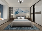 过道两边挂了中式壁灯。挂了一个中式墙饰,