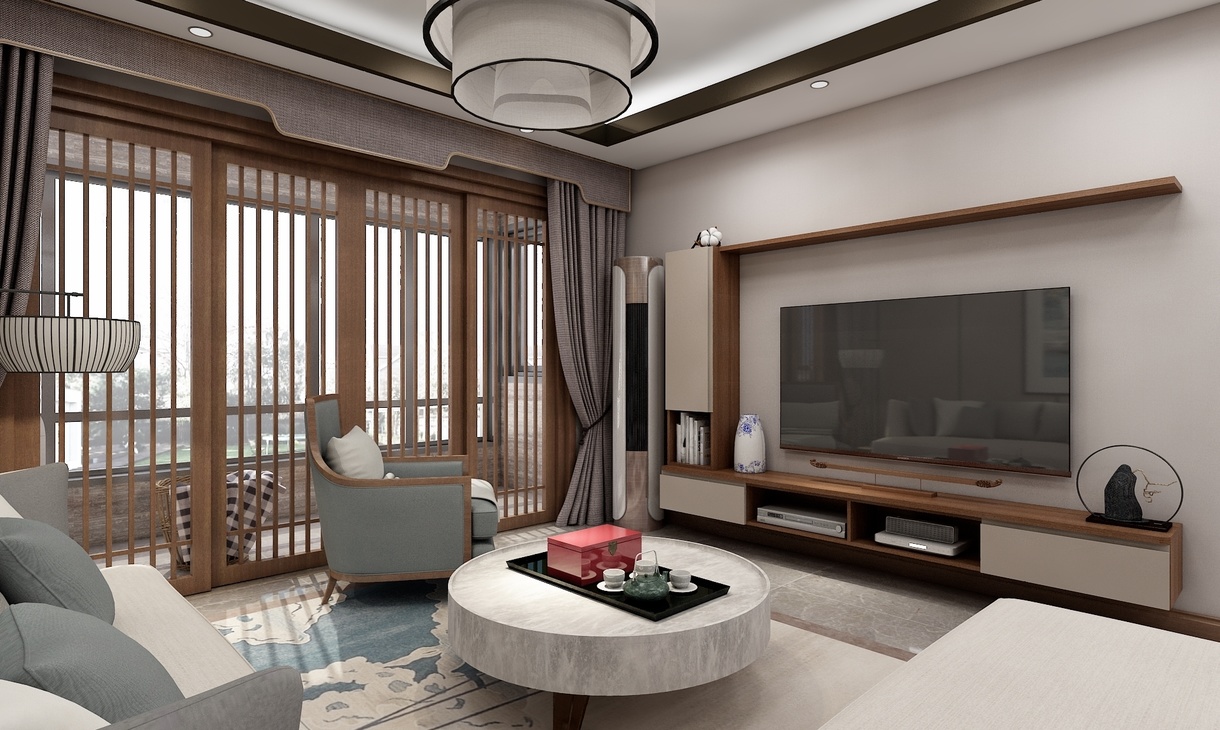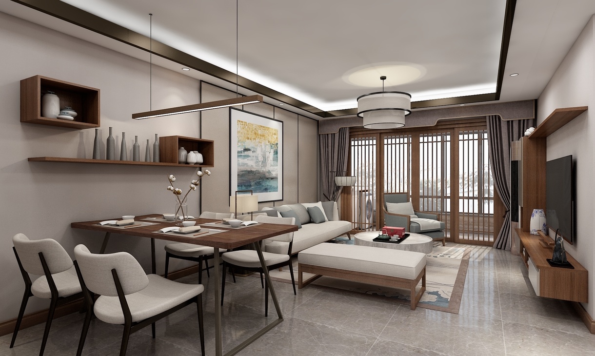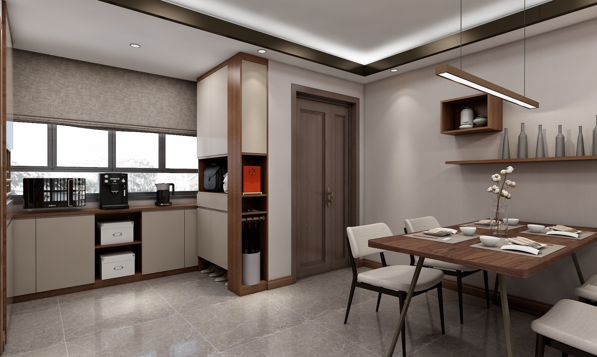 方案为新中式风格,力求用素朴的设计手法,去表达空间的朴素感。将北阳台纳入室内,让入户有一个收纳的位置,同时餐厅的位置可以在客厅的一条轴线关系上。各个空间的色彩和材质都能协调统一。