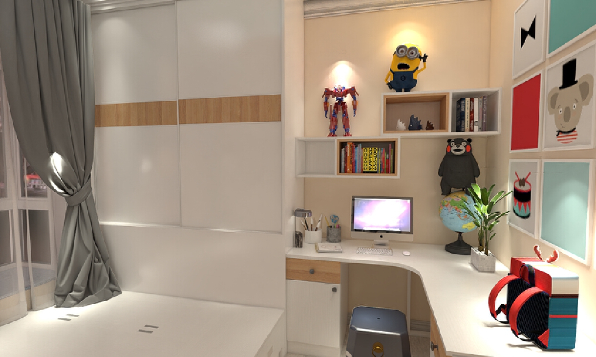 效果图:全屋概览效果图、客厅效果图、餐厅效果图、厨房效果图、儿童房效果图、主卧效果图