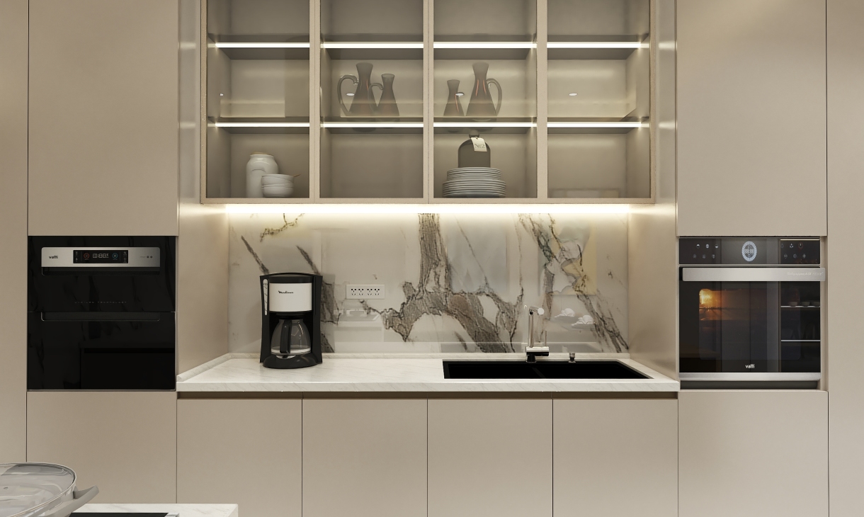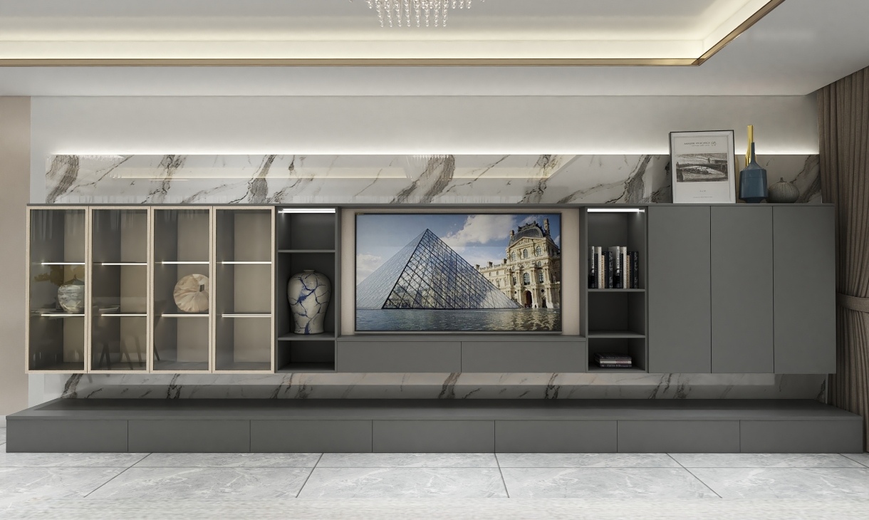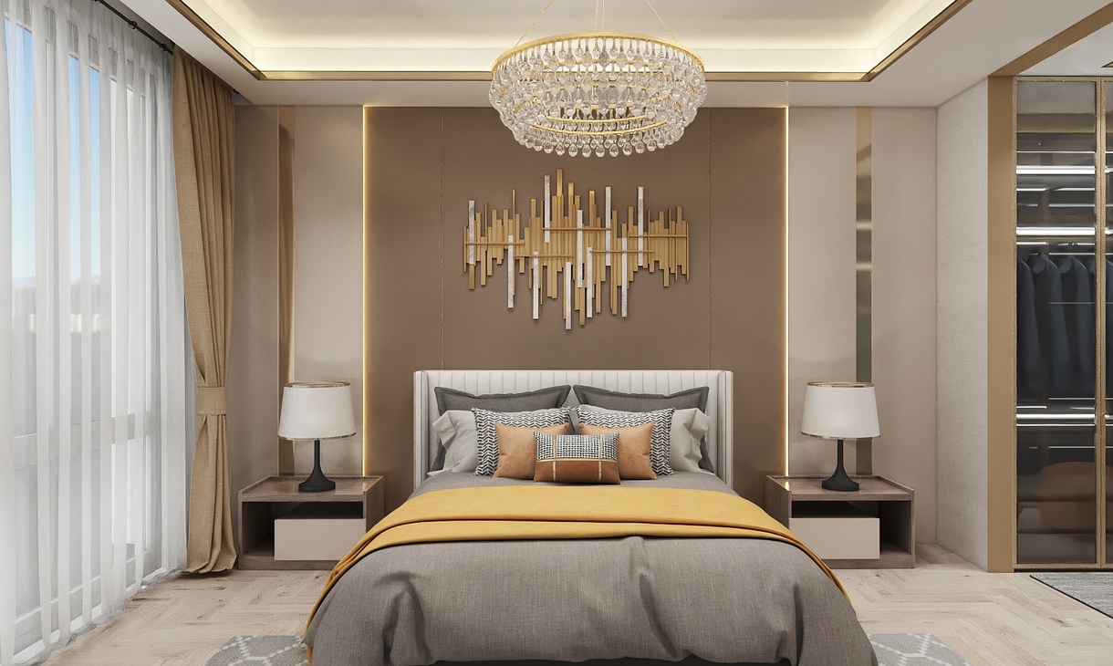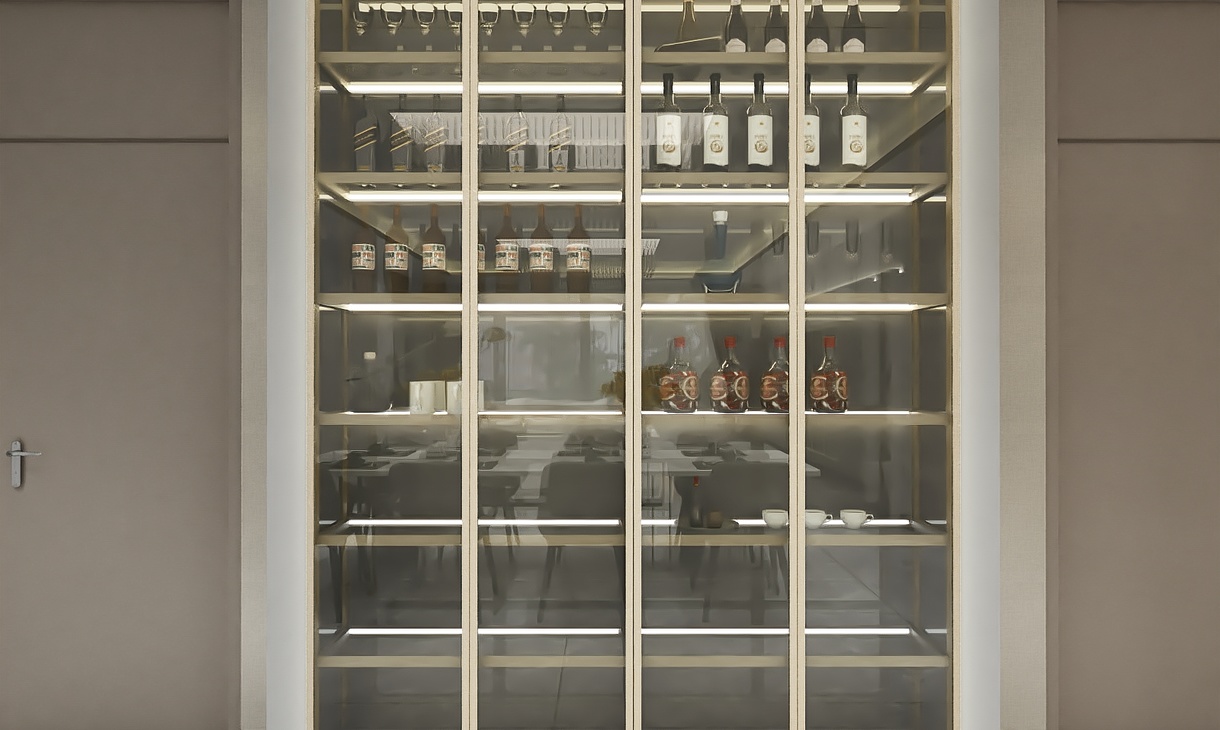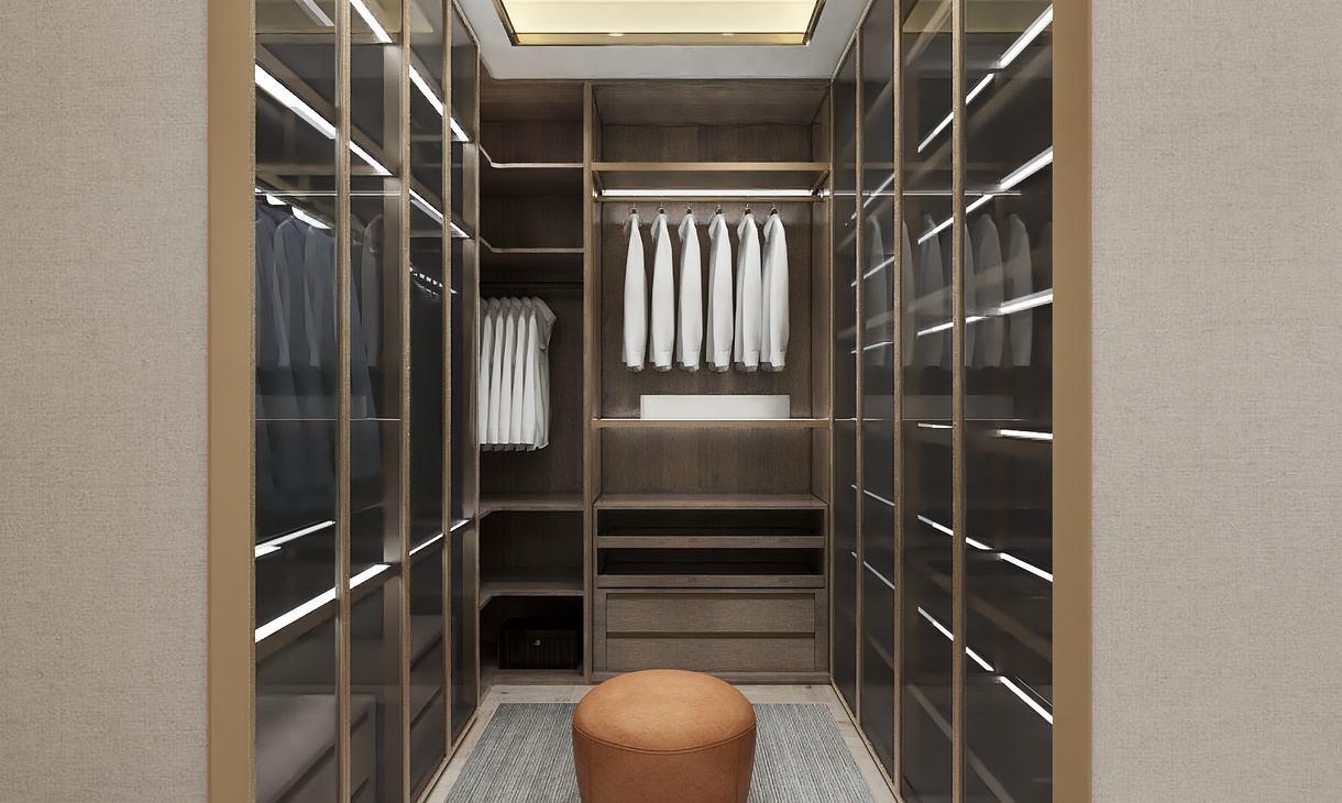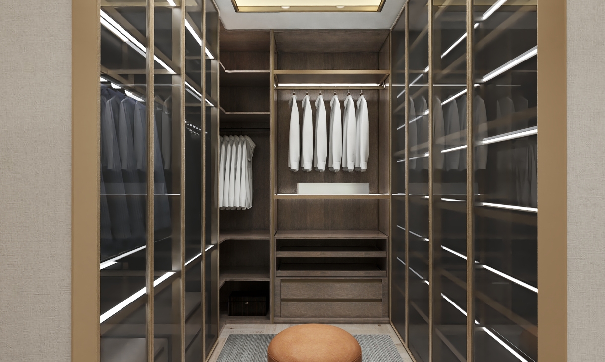石材、金色铝合金玻璃门、铝木结合衣帽间,简洁的线条,重新阐述极简轻奢的生活方式