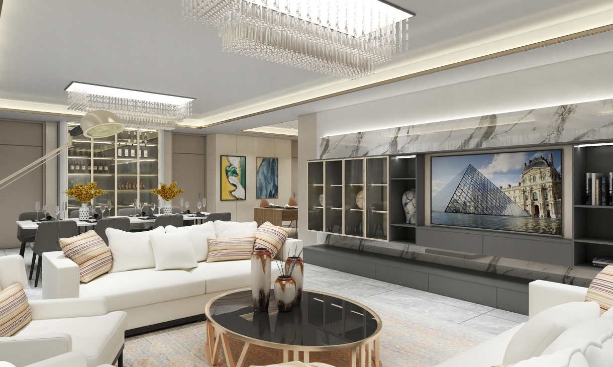 每个空间至少2张效果图+1张全案全景图展示,方案描述完整,所有空间需命名。