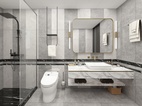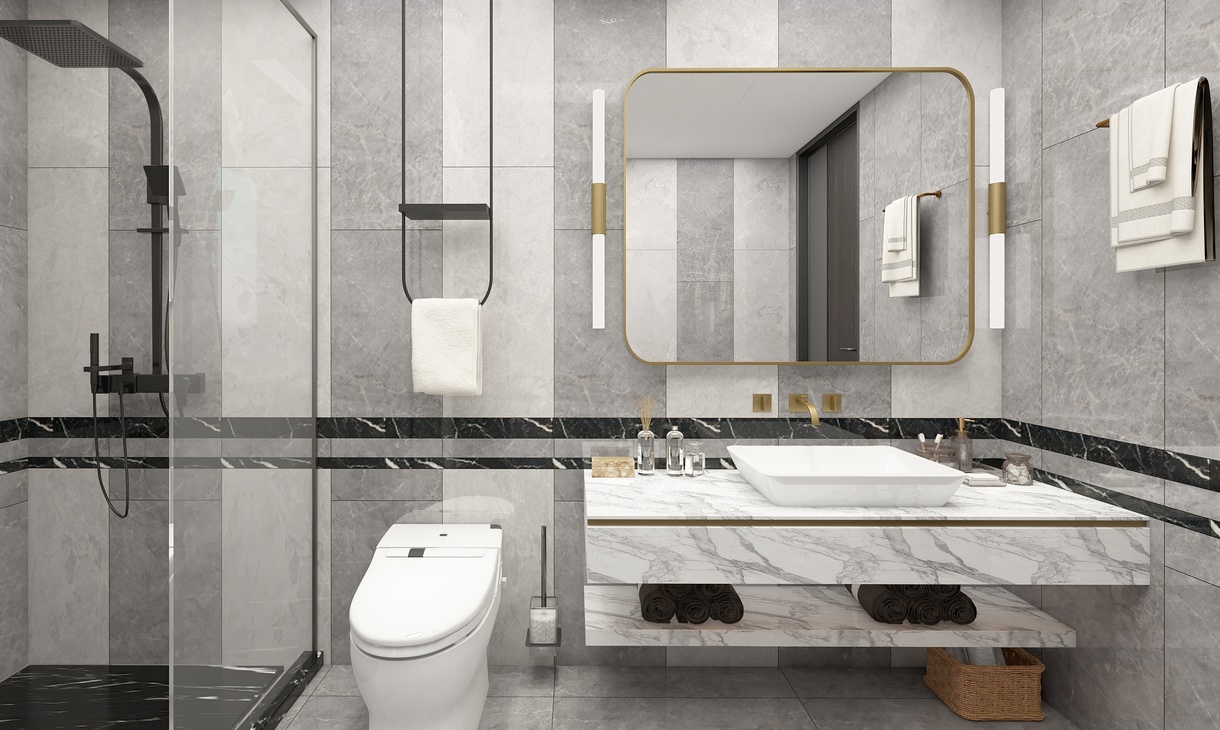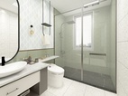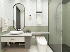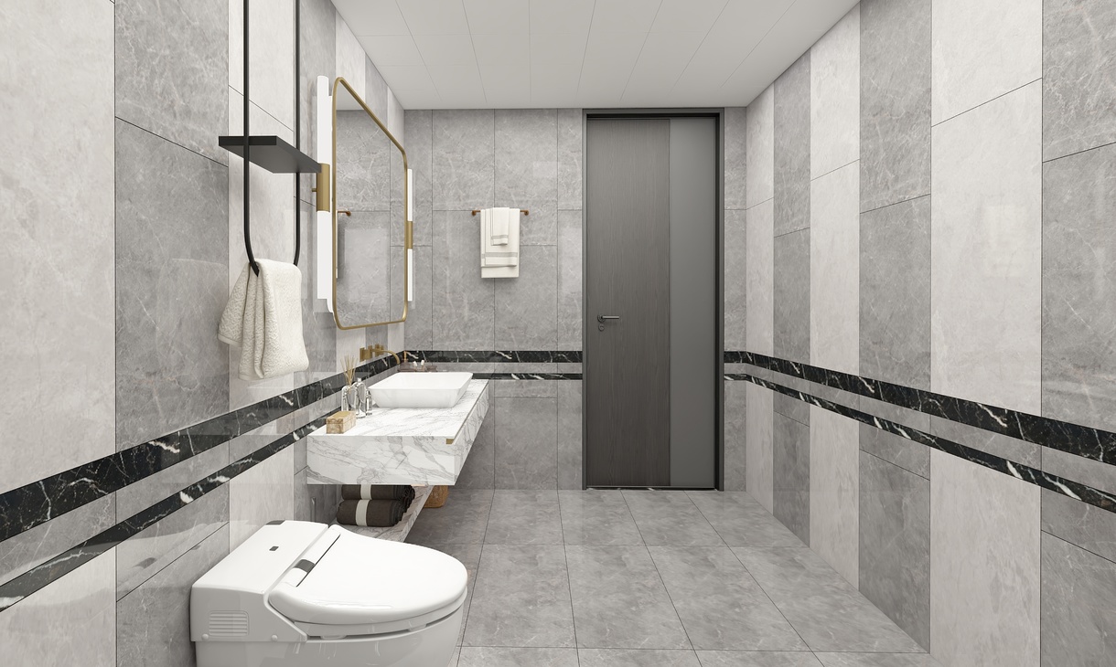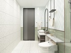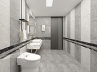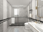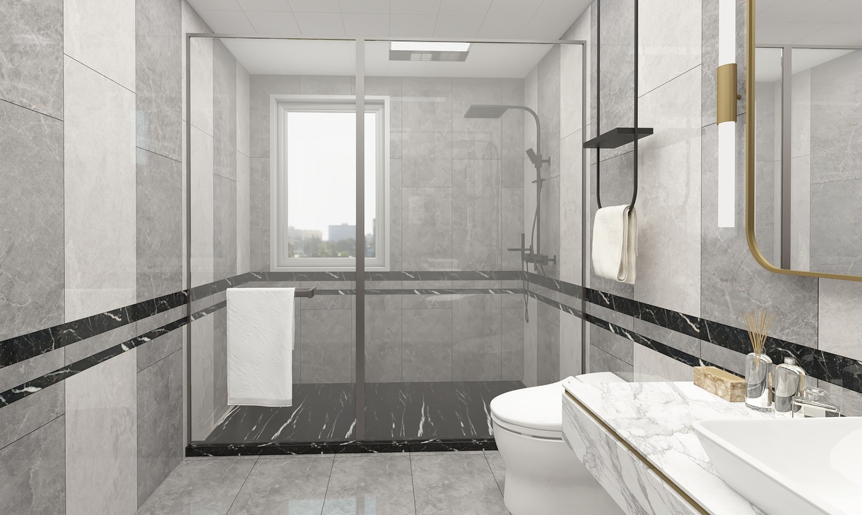 主卫用了灰色大板砖,墙地通铺,增加黑色腰线。