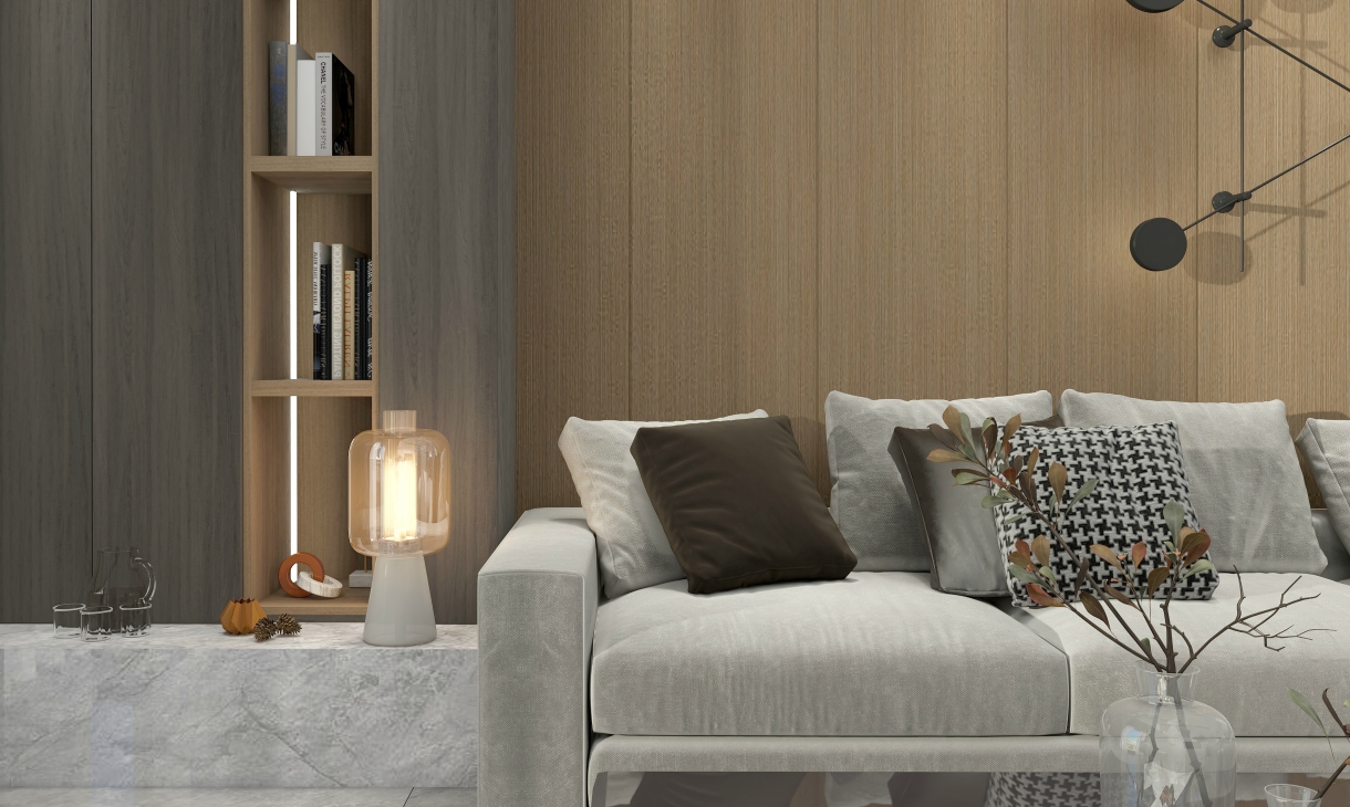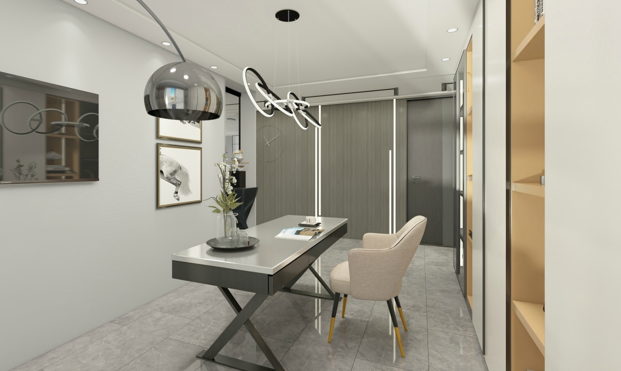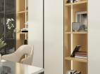 没有过于花俏的装饰仅以自然的色调和元素为主,过道加上简单却精致的装饰画,开放式书房布局让行走动线更为连贯,而明亮的光线引入为空间增添十足的活力。木色护墙和定制柜充满丰富的肌理特色,营造出自然而具有品质的家居氛围。