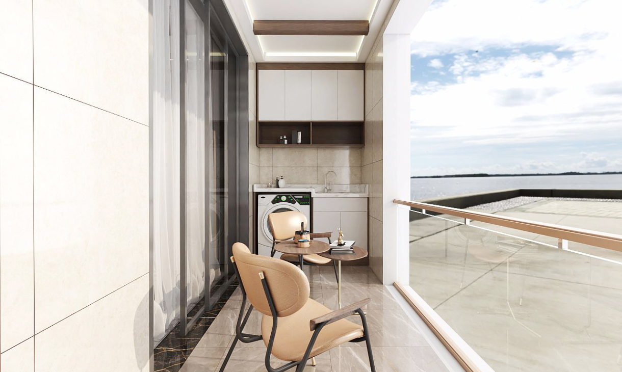 阳台大面积的瓷砖,让整体空间更加整洁。同时也把阳台改造为一个富有文化气息的空间,不再是一样功能单一的区域。