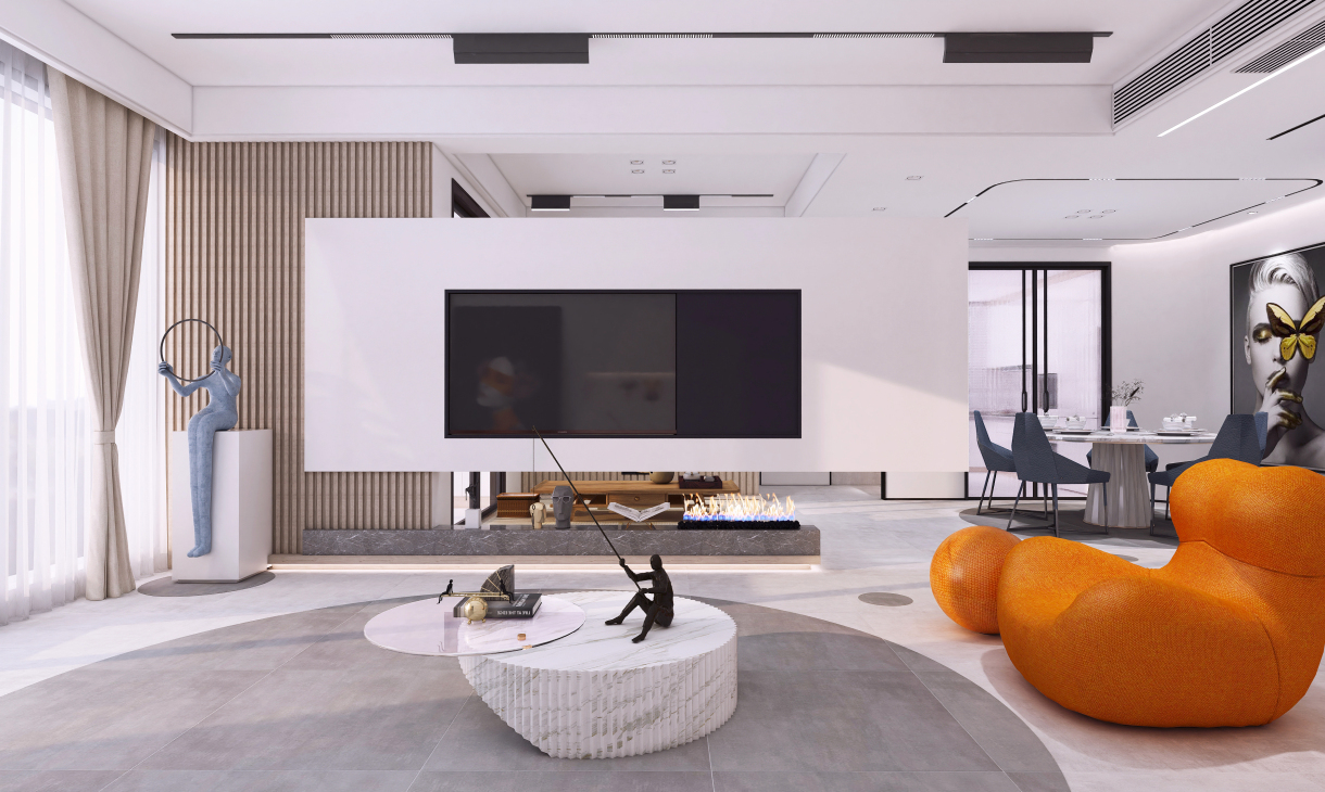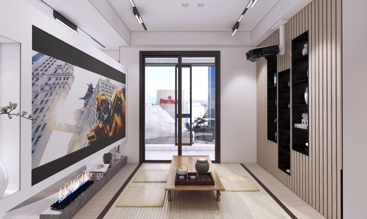 休闲区更多的是去表达舒适、自然、零压的环境,在这里可以与小友饮茶,下棋,空余还可以成为家庭影院。