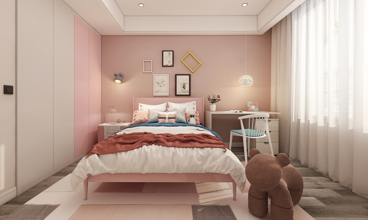 效果图:全屋概览效果图、客厅效果图、餐厅效果图、厨房效果图、儿童房效果图、主卧效果图