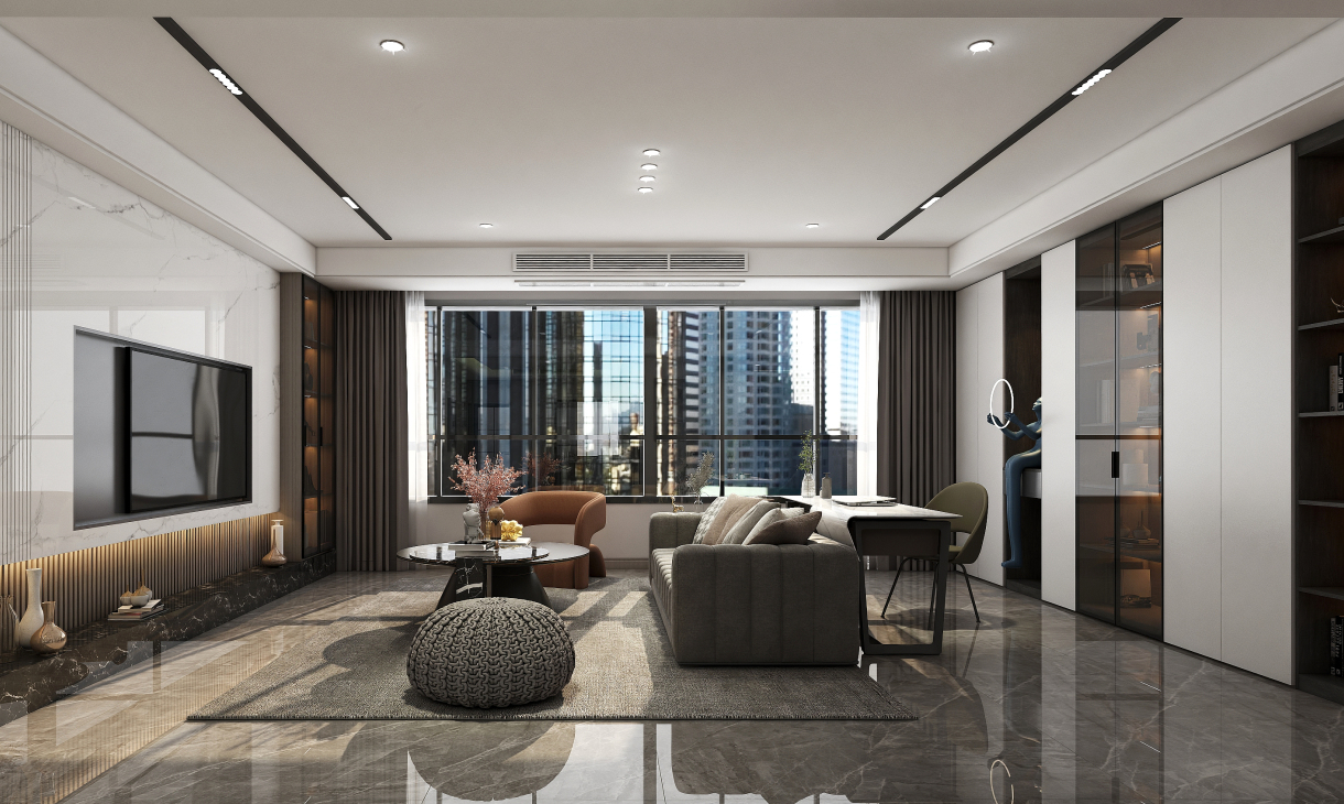 每个空间至少2张效果图+1张全案全景图展示,方案描述完整,所有空间需命名。