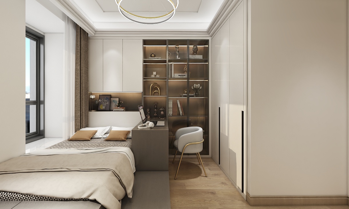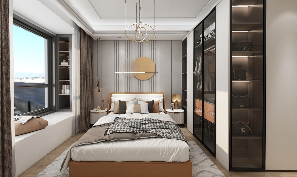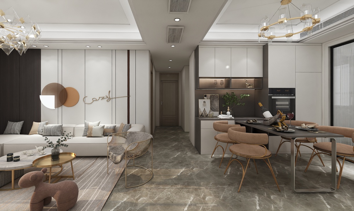 徐汇天悦160m²四居室现代轻奢,争对定制产品搭配,根据客户要求布局,配合硬装施工的三点原则呈现出来的初稿效果