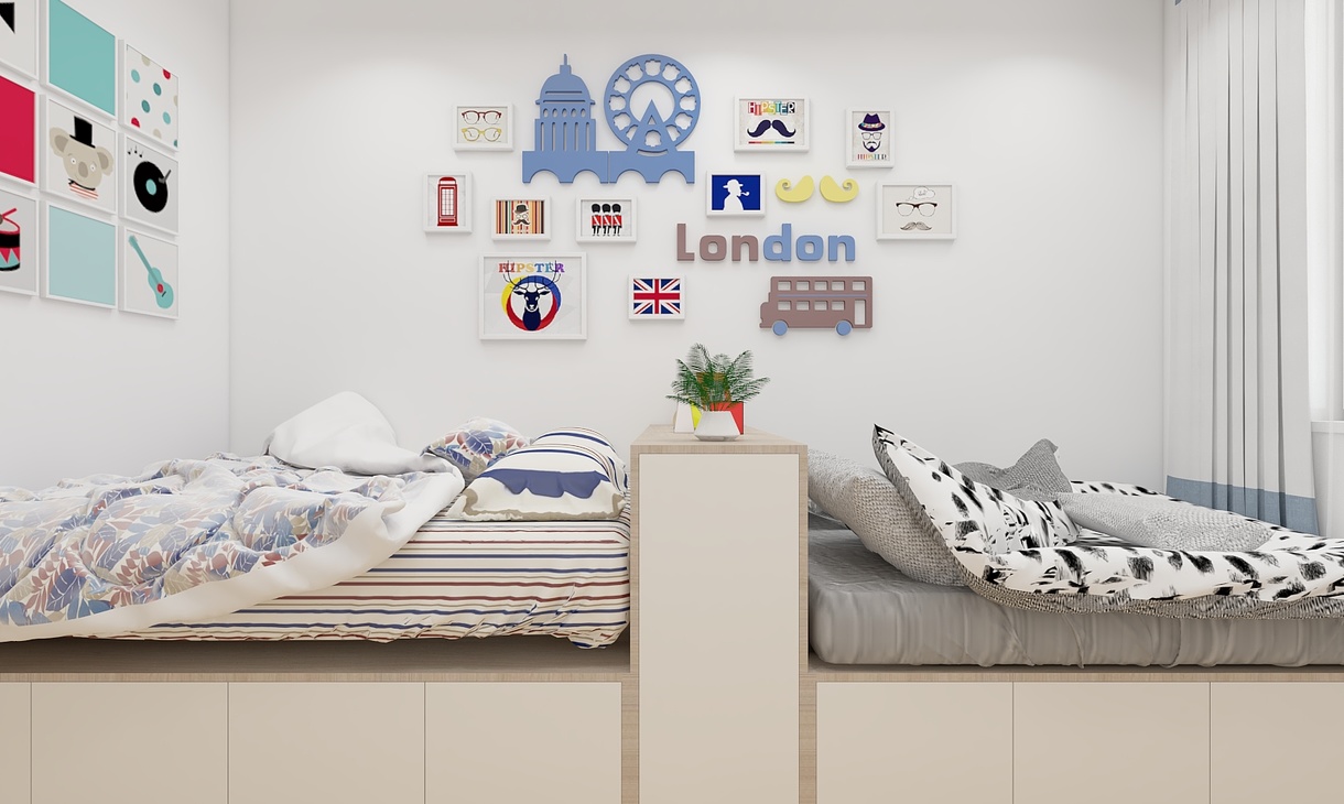 效果图:全屋概览效果图、客厅效果图、餐厅效果图、厨房效果图、儿童房效果图、主卧效果图