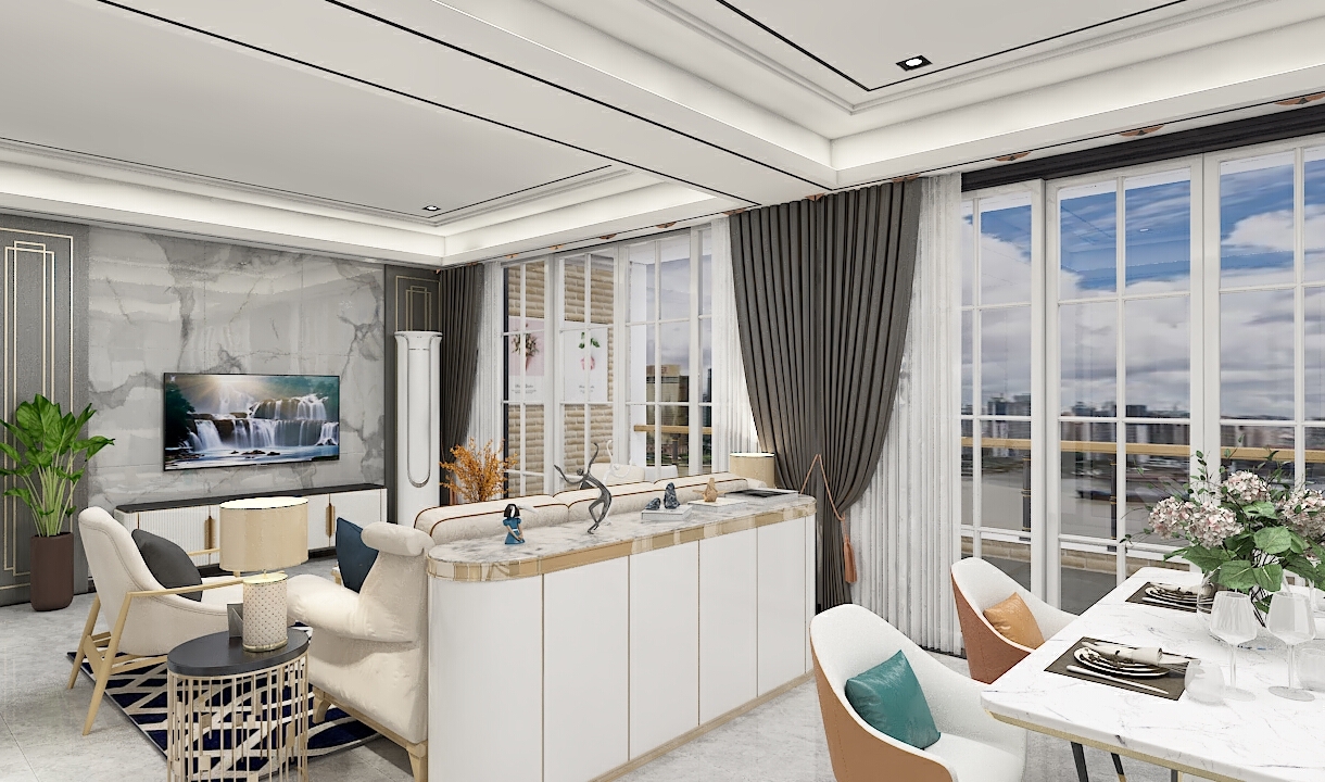 每个空间至少2张效果图+1张全案全景图展示,方案描述完整,所有空间需命名。
