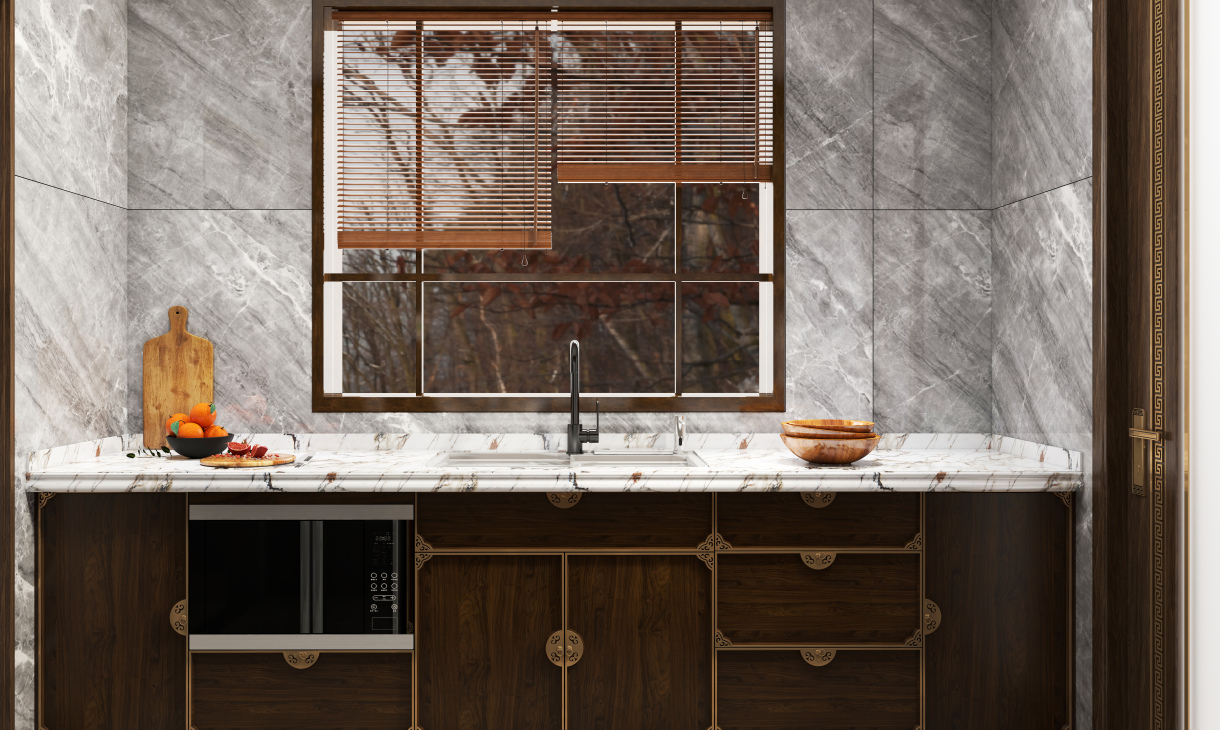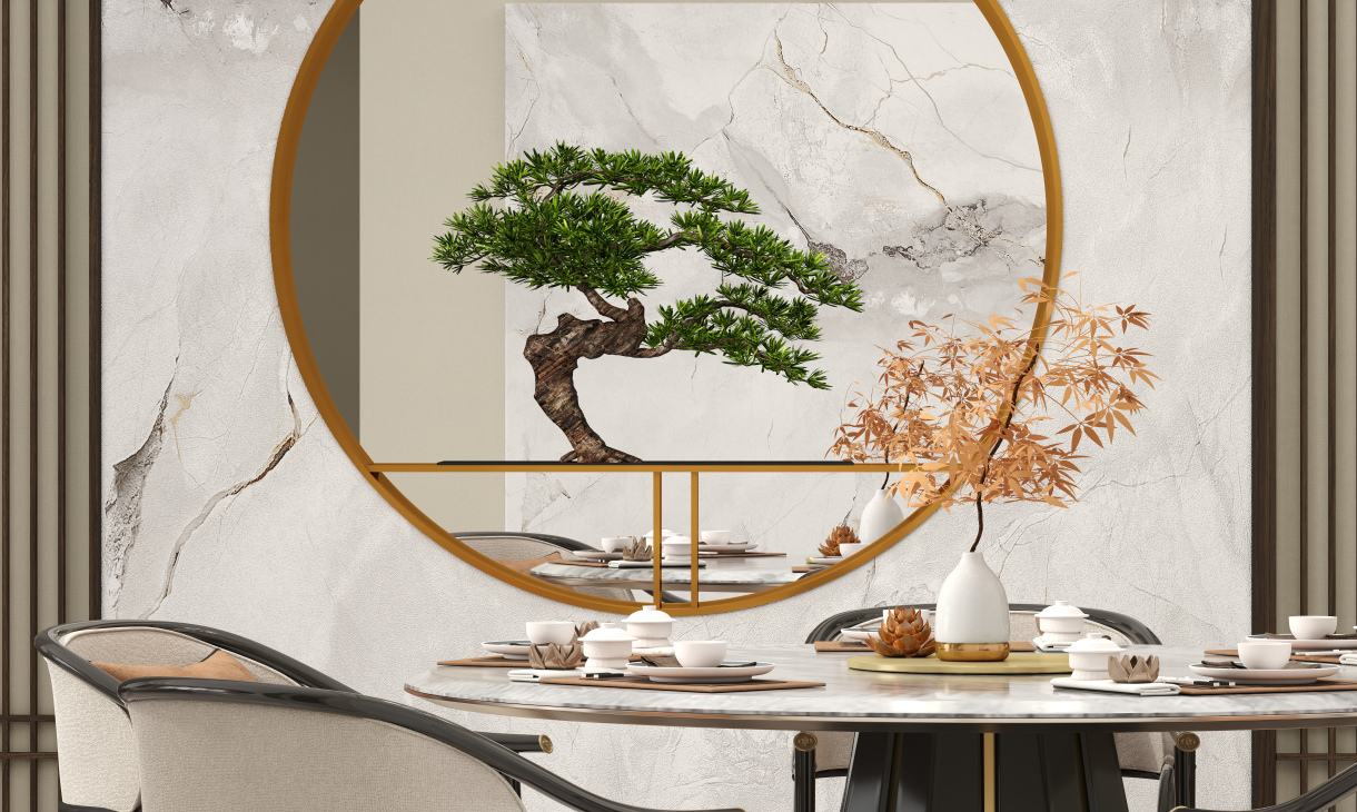 大面积的大理石之态营造繁简有序的淡泊之意。至简至轻,至淡至泊,所谓身心轻安。