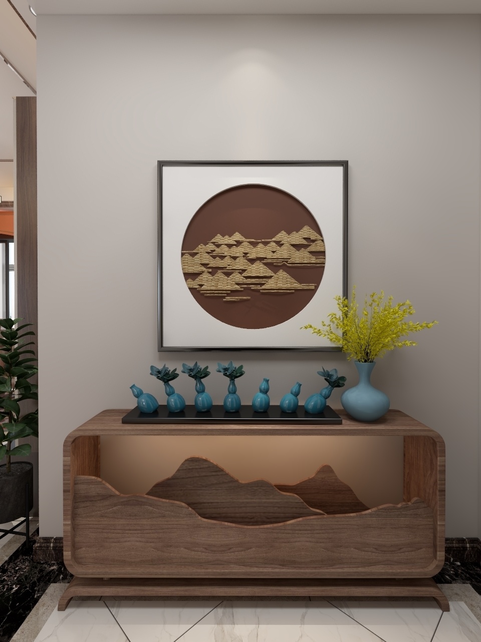 本方案的设计上采用了传统中式风格,以现代人的审美需求去营造传统的中式韵味,将现代生活与传统文化完美融合。