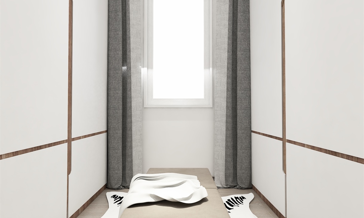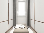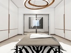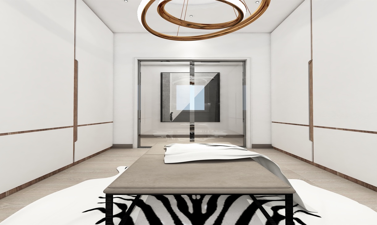 利用两边墙设计高大的衣柜,中间一吊灯一座椅一地毯,典雅精致。