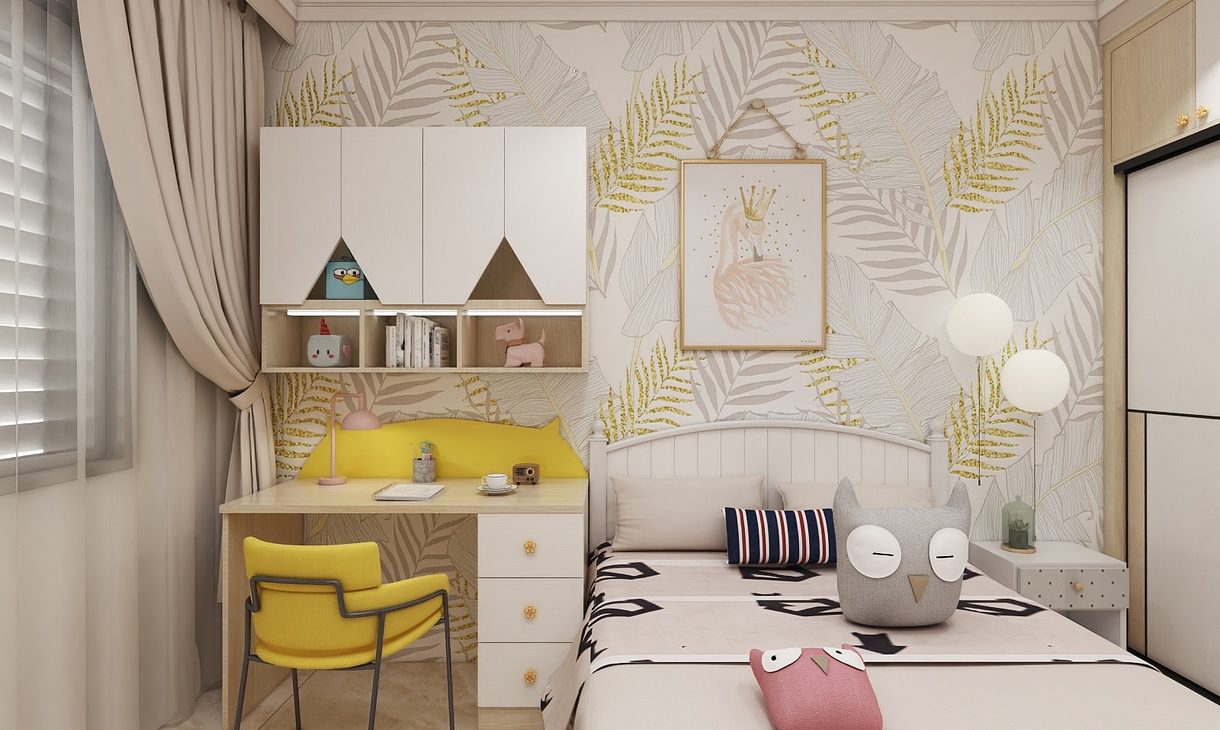 效果图:全屋概览效果图、客厅效果图、餐厅效果图、厨房效果图、儿童房效果图、主卧效果图