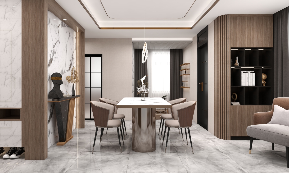 家是乐土,孕育着浪漫与情怀;精致的空间设计,是将生活中简单的奢侈品作为日常体验的一部分;一层空间对原布局进行了大胆的改造,打破原有户型的束缚,让餐厅、休闲区以及玄关的空间更加开阔自由,家庭成员间有了更多的交流和互动。楼梯的设计能更好的衔接空间,增加开阔度;工作区与休闲区互不干扰;整体空间强调功能性和实用性的同时,也有对审美的追求与考量。