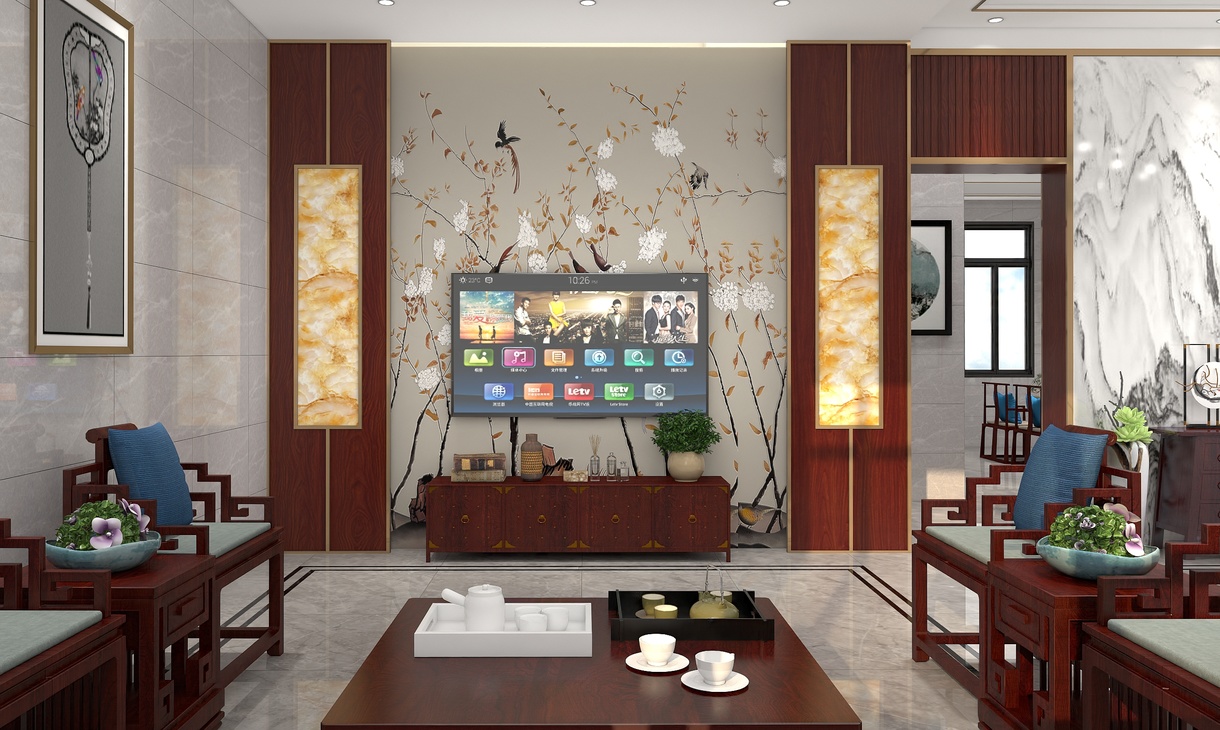 新中式风格,红木色客厅