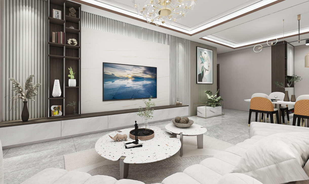 每个空间至少2张效果图+1张全案全景图展示,方案描述完整,所有空间需命名。