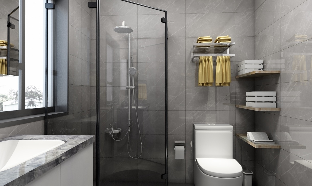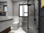 主要的干湿分离做好了,坐便器旁设立了几个层板,方便储放卫浴内需要的小物件。