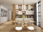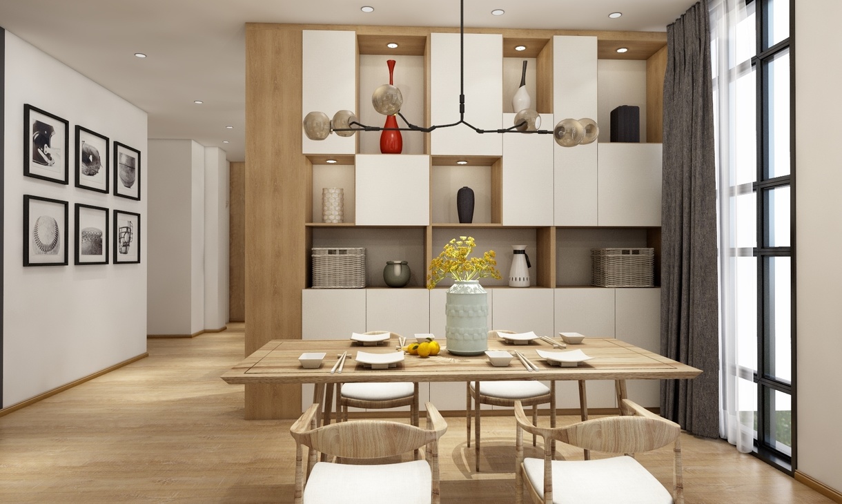 餐厅:餐桌椅原木质长桌,配着黄色的小花,更显明朗与温馨。 白色垫子的木质餐椅与原木色的餐桌搭配,现代与自然元素想结合,温暖的色调一致搭配。让整个餐厅温暖起来。 入户:鞋柜是定制款的,下班回家时,可让人坐下来换鞋子,方便舒适。