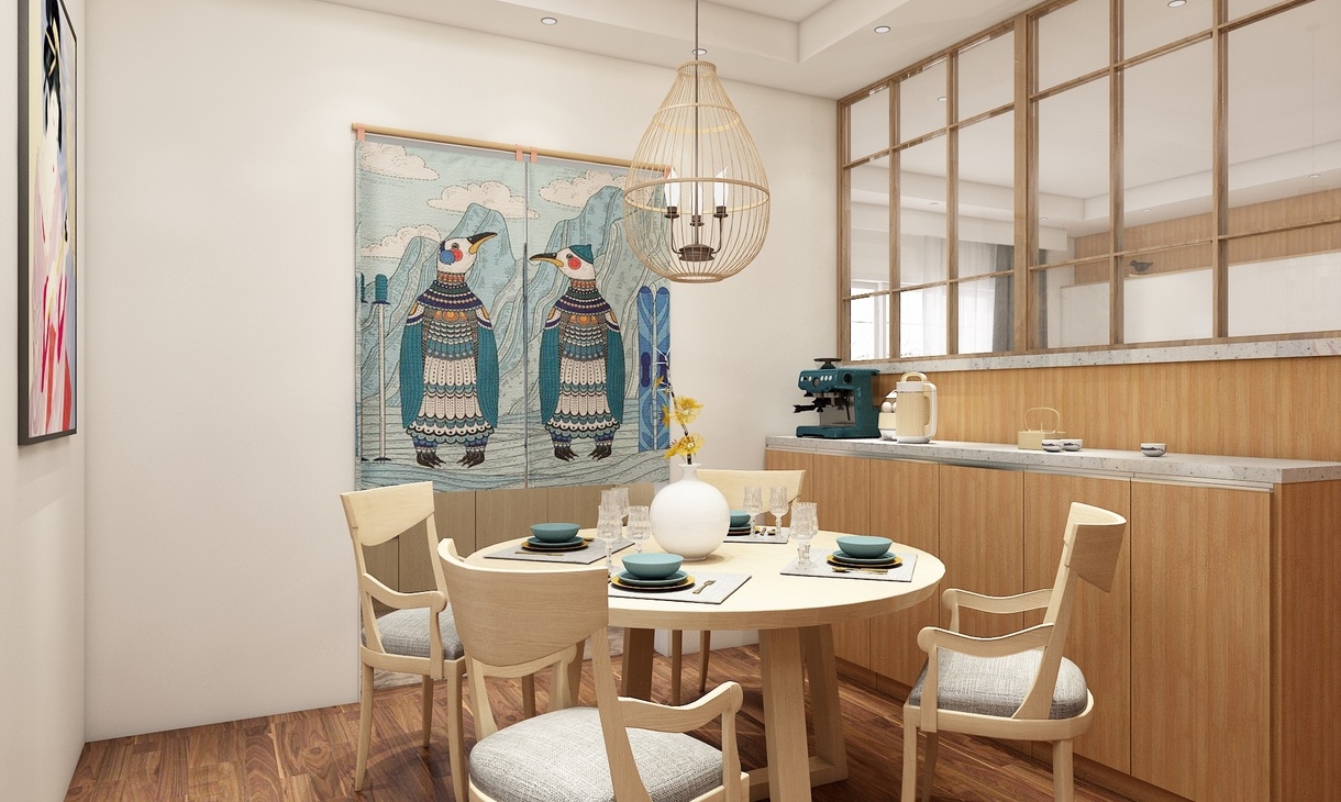 整体方案在北欧风的基础上,加了稍许现代风元素,着重软装搭配,采用米原木色彩明亮舒服,这样使视觉上有温馨感,卧室用装饰画做表现屋内冷暖色相呼应,整体体现舒服的感觉,柔和的色调,不会显得混乱,在色彩的选择上打造出一个温馨的家。