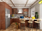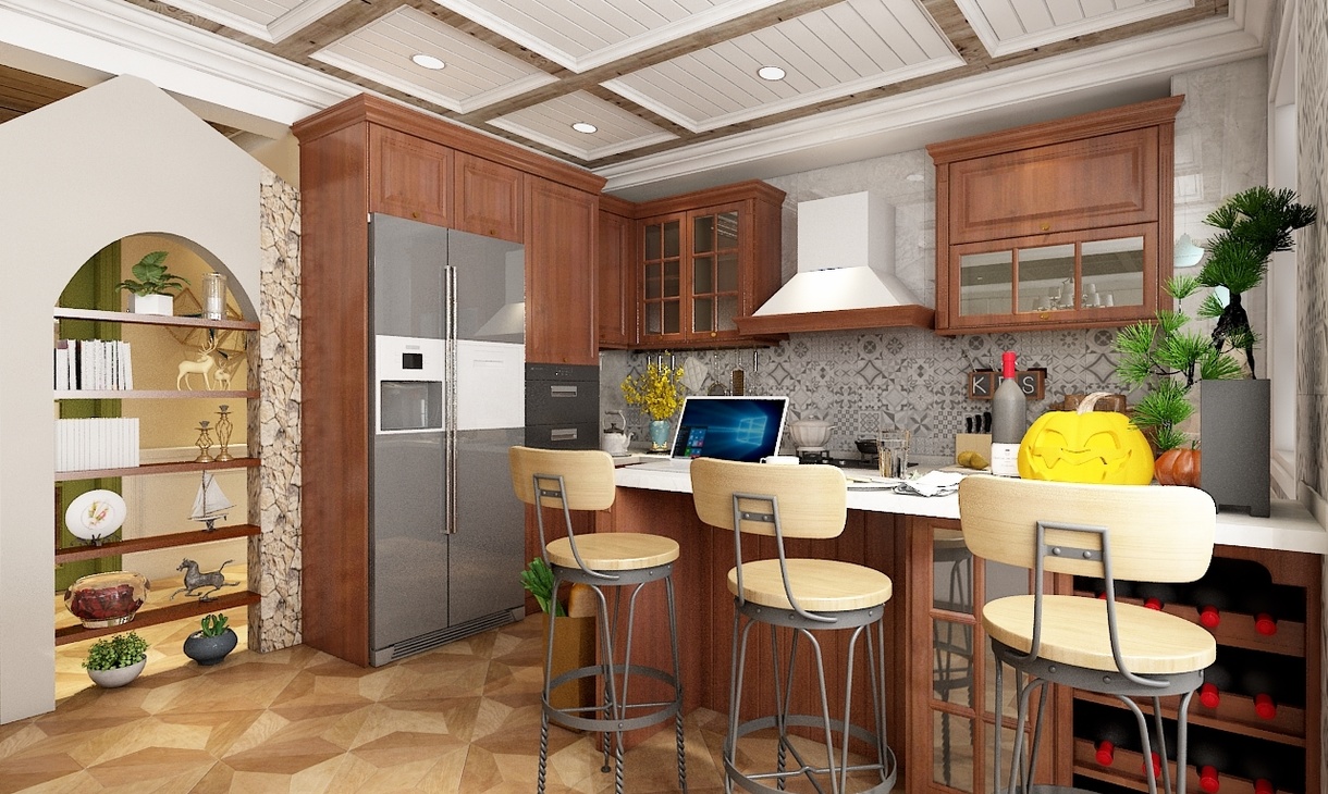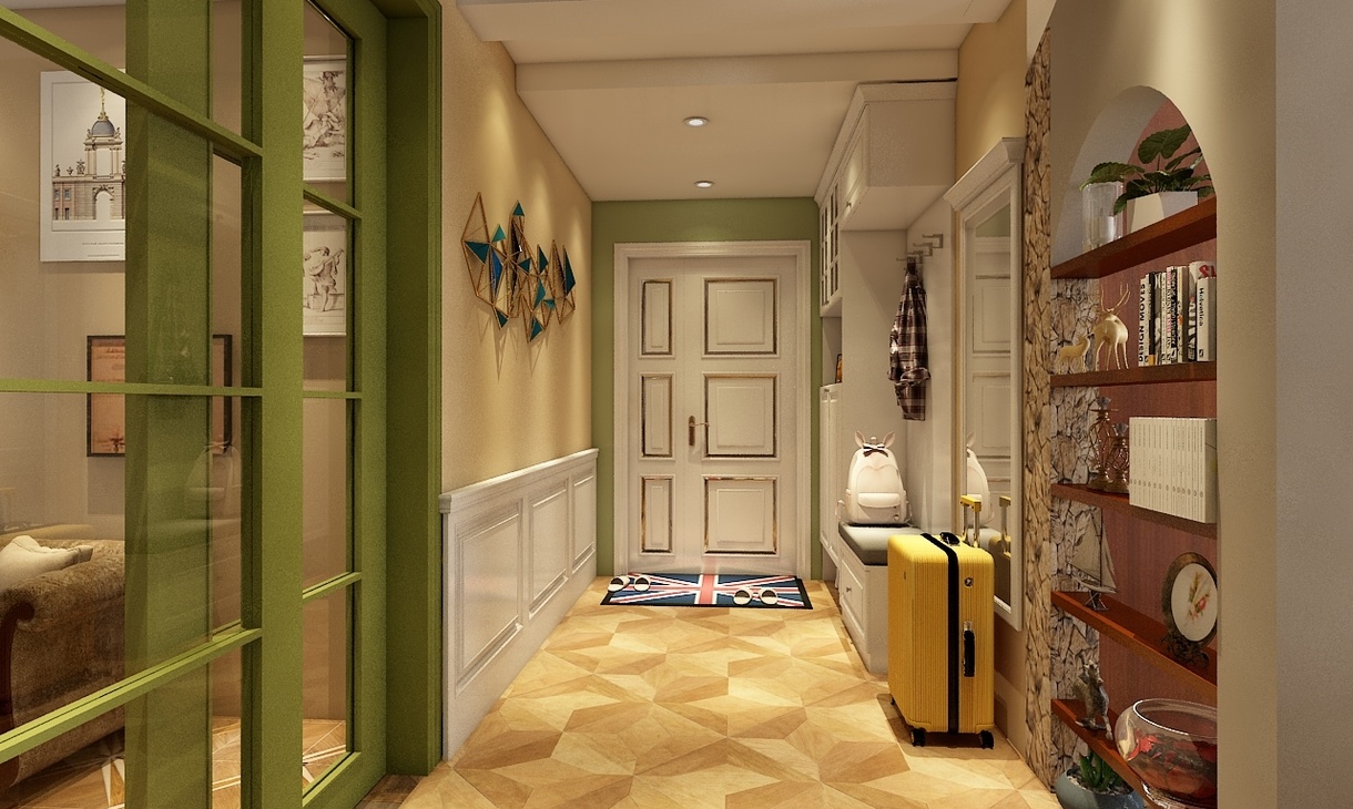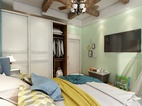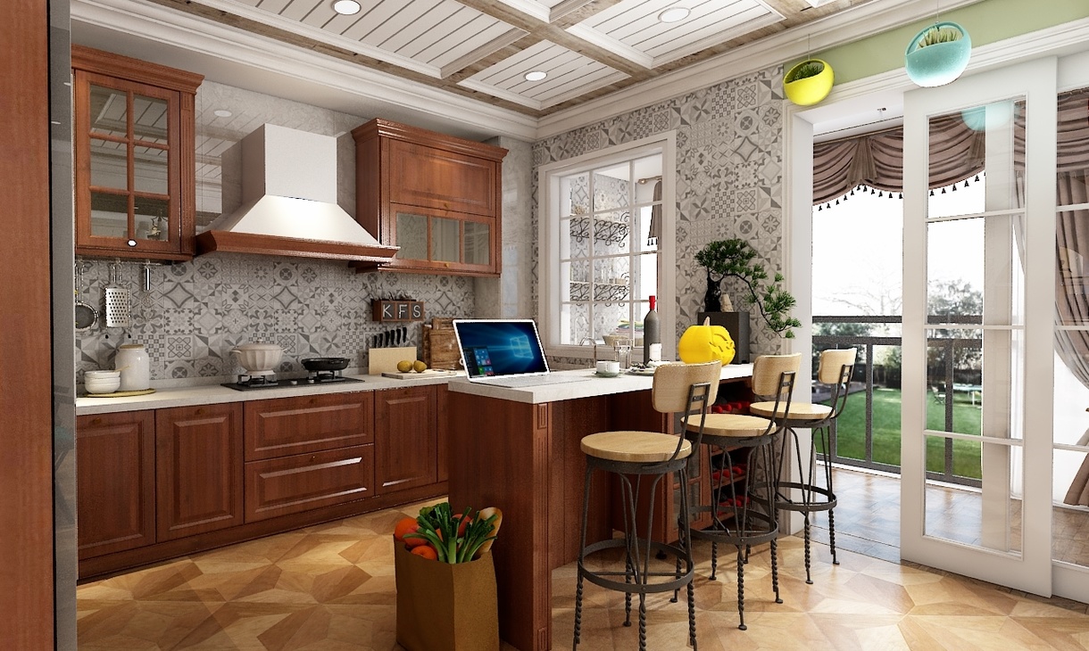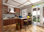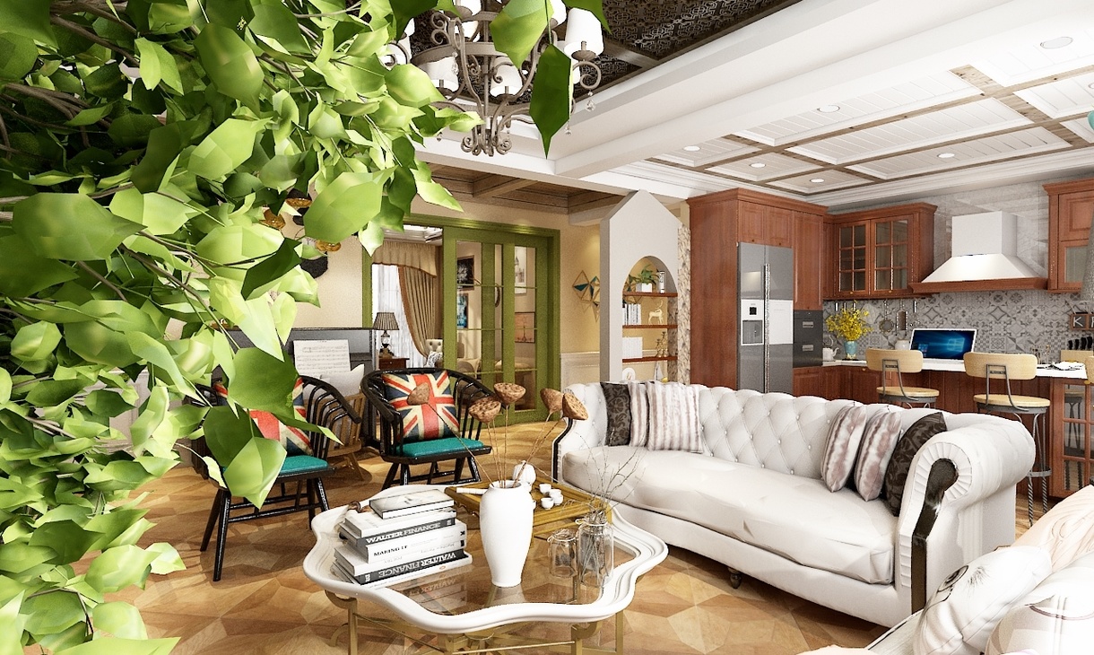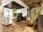 此方案主题色调采用暖黄为主,些许绿色点亮搭配上实木拼花木地板与些许散落的绿植,使得整个空间既温馨舒适又觉得生机勃勃,使人心旷神怡。结合业主家两个人生活,于是把餐厅舍弃,厨房墙体拆除,设计一个开放式厨房,厨房自带吧台,吧台的设计促使男主人更容易下厨,增进两个人的感情。有限的空间,无限的可能。