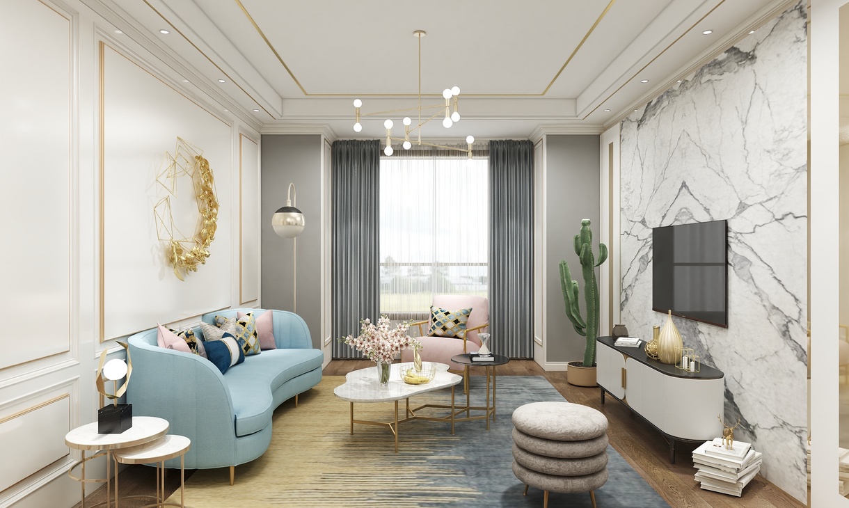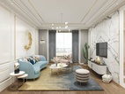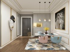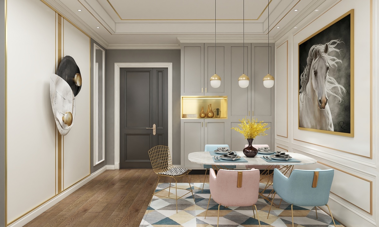 客厅背景采用低调的白色,沙发则采用了蓝色和粉色,就像跳跃的音符,活跃了整个空间,增强了气质。餐厅挂画选用了代表贵族的马,加强了一点狂野的气息......