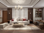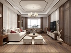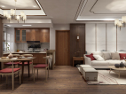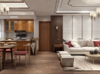 开放式的客厅,与餐厅相连,拥有大面积的落地窗,阳光充沛,我们仅使用了一层纱幔配上木质百叶,最大限度的保留自然光线的同时,给与空间轻盈通透的品质感。
