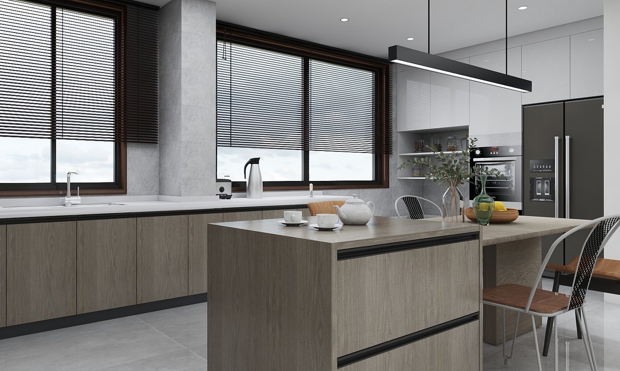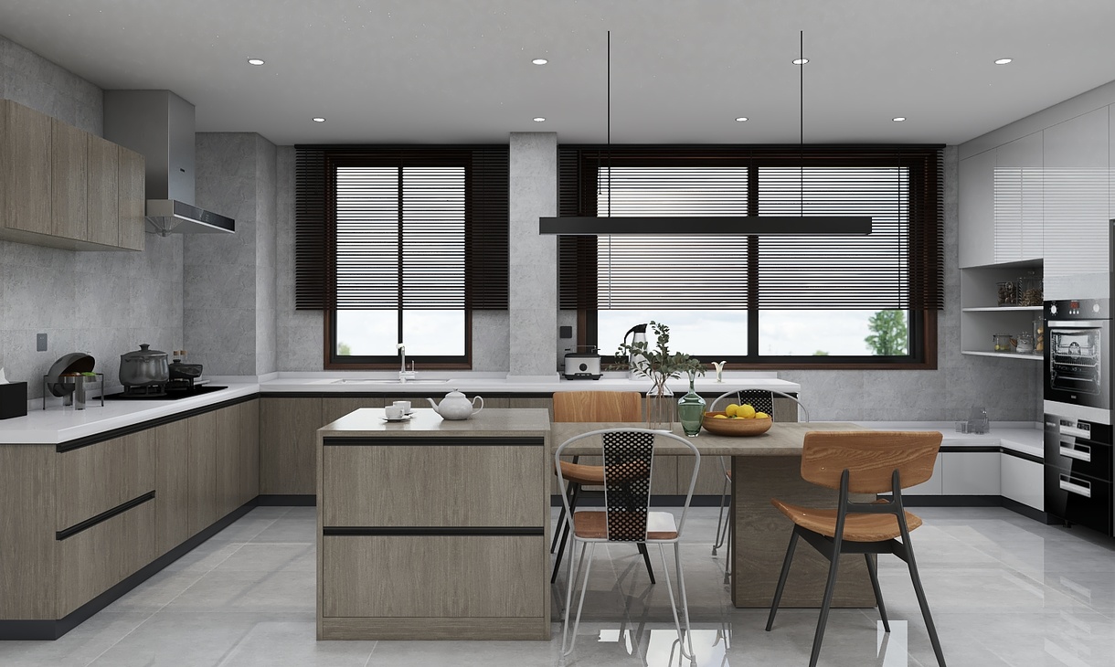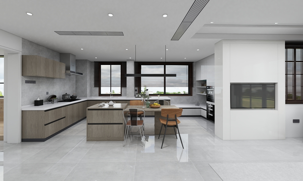 开放式厨房,在效果上是真的很好,如果有觉得油烟问题的可以加玻璃隔断,或者用集成灶,玻璃选透明度高的也可以,本套感谢业主配合,所以出来的开放式厨房效果特别好。
