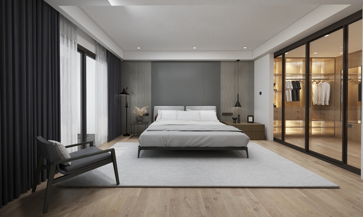 业主作为一位科技公司的主力职员,职场压力会比较大,一半是因为生存,一半是因为复杂的生活。 有时候就连属于自己的一方天地 -- 家,也会因那些拥挤、繁复的细节让人倍感压力。所以在找我们设计的初衷,就希望摒弃一切无用的细节,保留生活最本真、最纯粹部分的实用部分,而且希望留下的都是有格调,有质感的物件和空间。 我们设计师要做的就不仅仅是一种设计风格,而是满足既要业主感官上一种简约整洁的感受,更要反映出主人优雅的思想和品位 -- Less is more,化繁为简。
