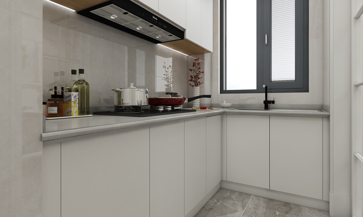 狭小的厨房,炒-切-洗一条线,充分的利用好空间,虽小但是实用。