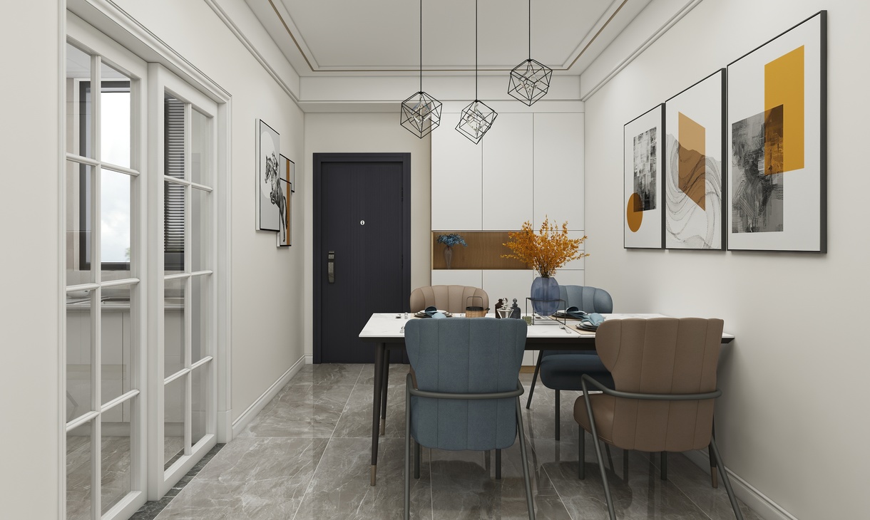 餐厅没有过多的修饰,简单的颜色处理,和客厅相呼应,相对于既要充当过道的小小的餐厅来说,一定要简洁,让整个空间更加的大气。