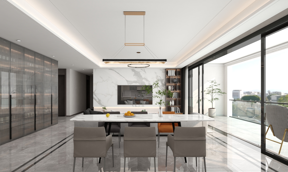 每个空间至少2张效果图+1张全案全景图展示,方案描述完整,所有空间需命名。