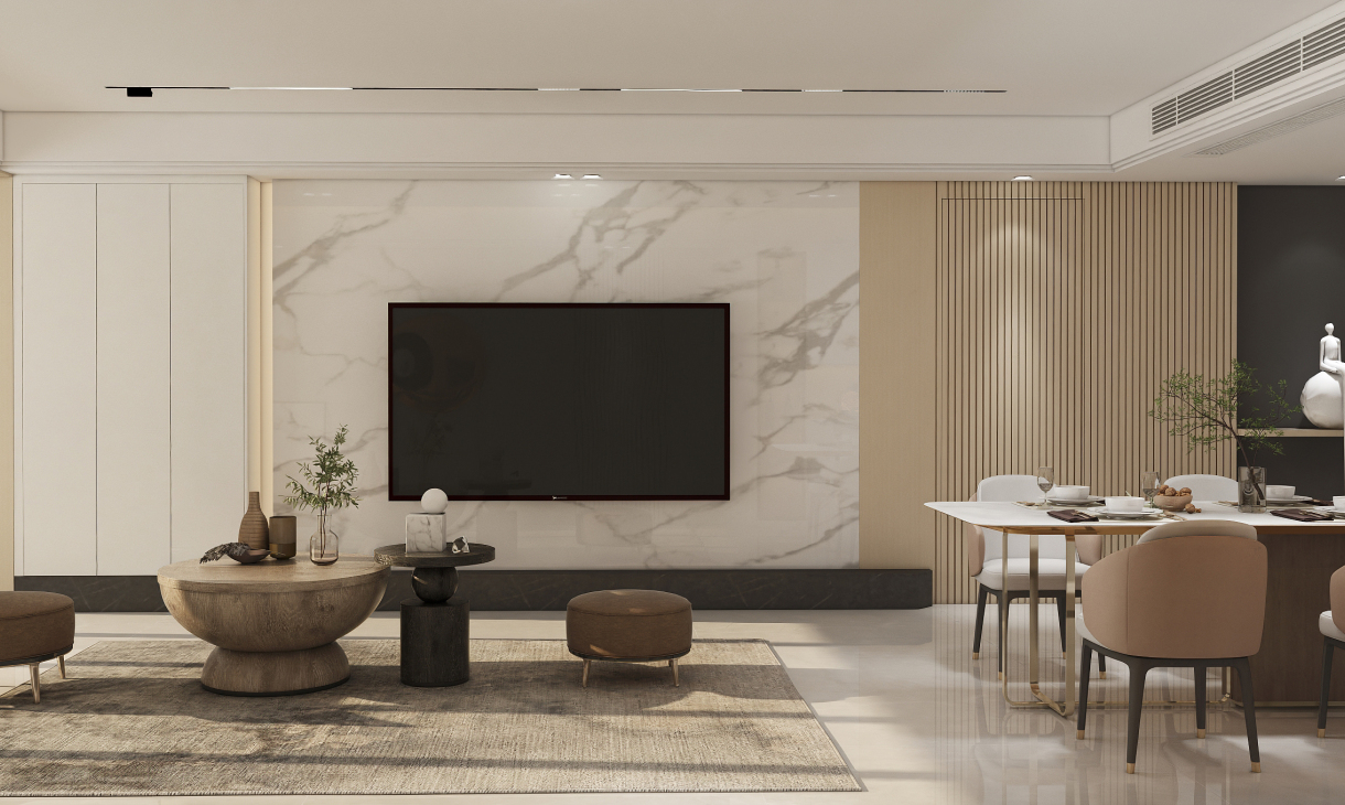 每个空间至少2张效果图+1张全案全景图展示,方案描述完整,所有空间需命名。