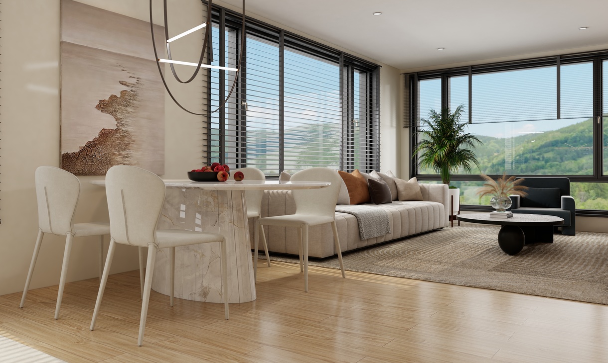 每个空间至少2张效果图+1张全案全景图展示,方案描述完整,所有空间需命名。