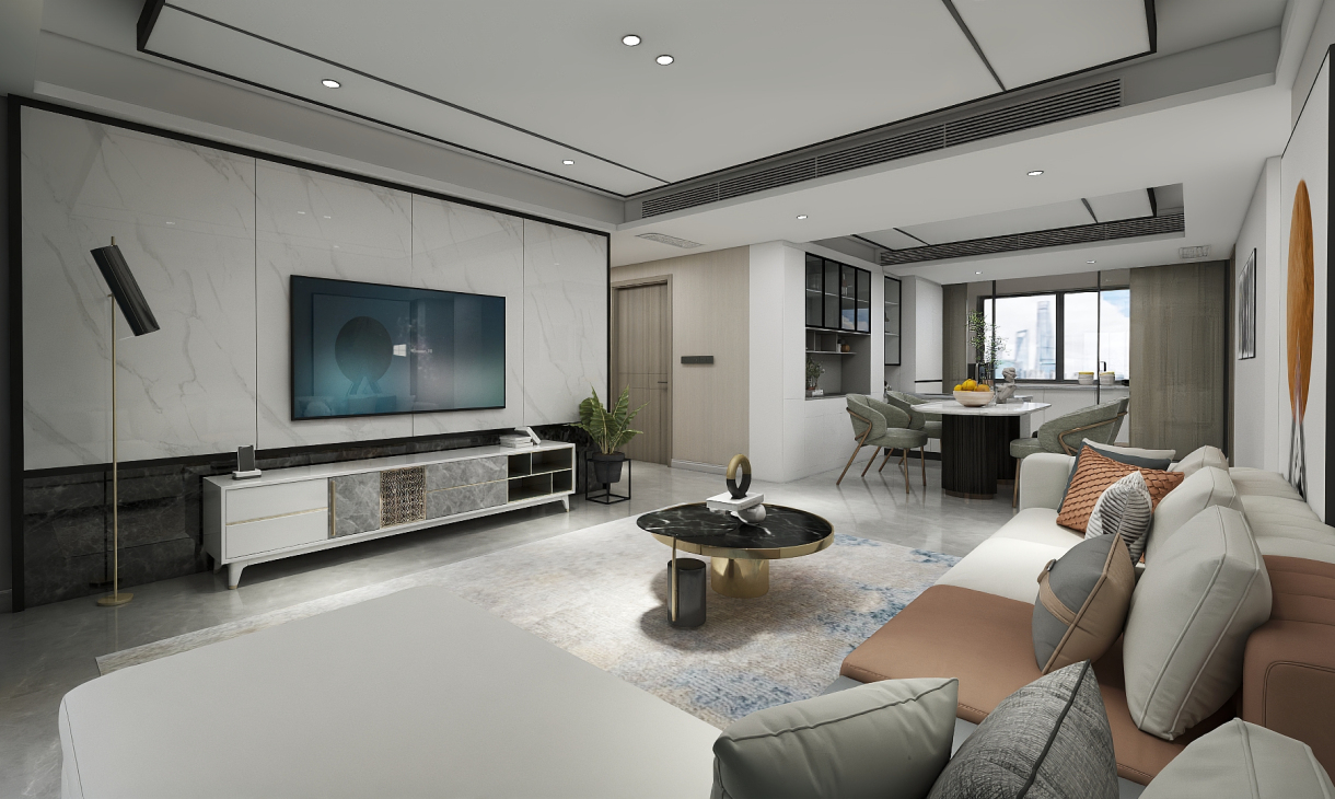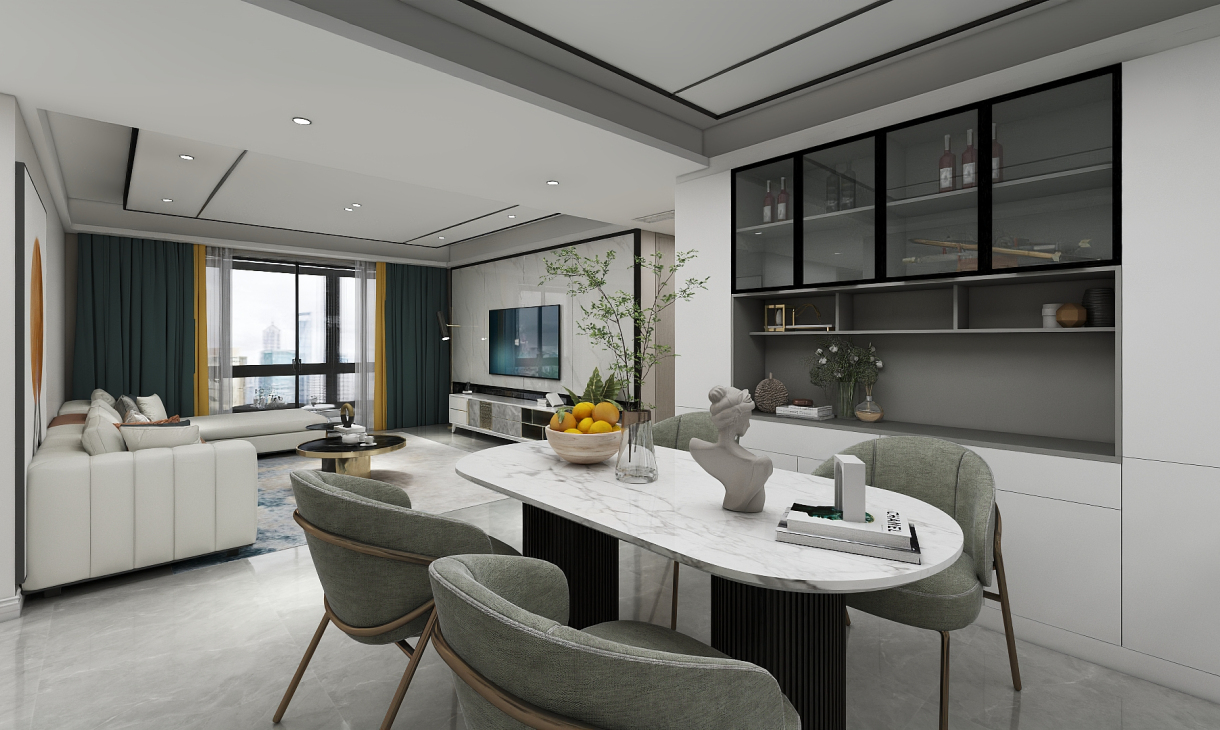 每个空间至少2张效果图+1张全案全景图展示,方案描述完整,所有空间需命名。
