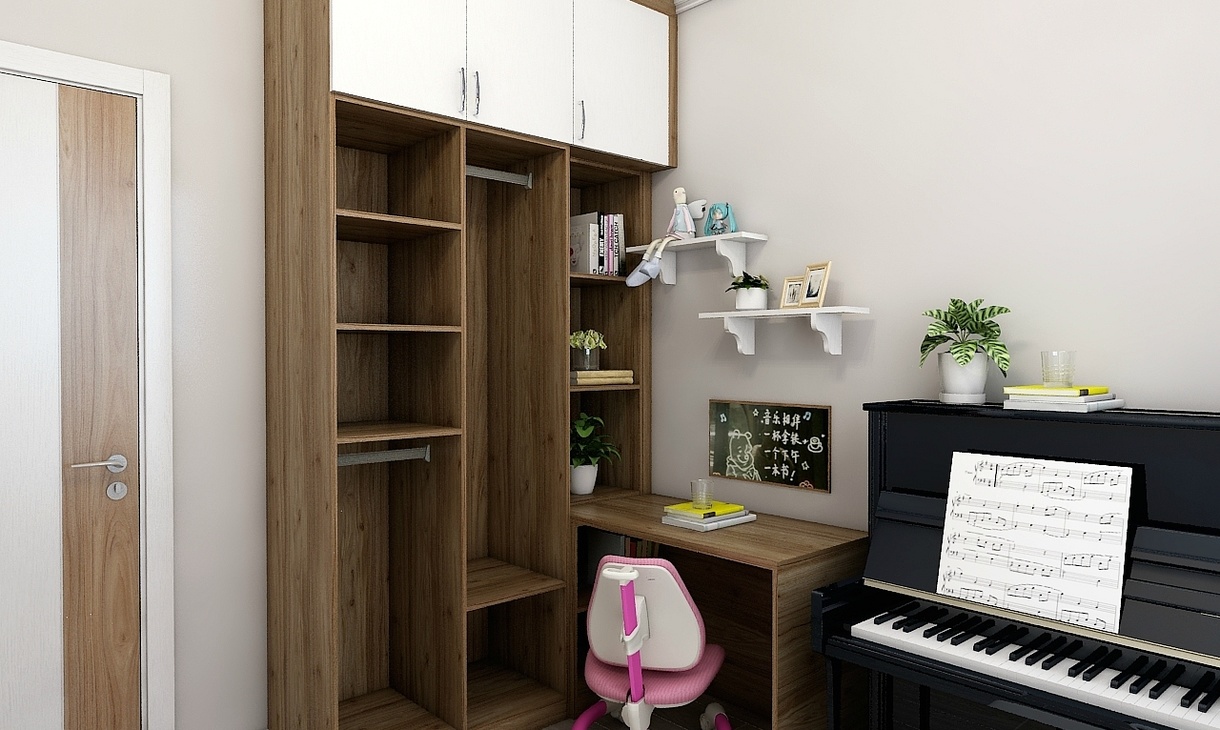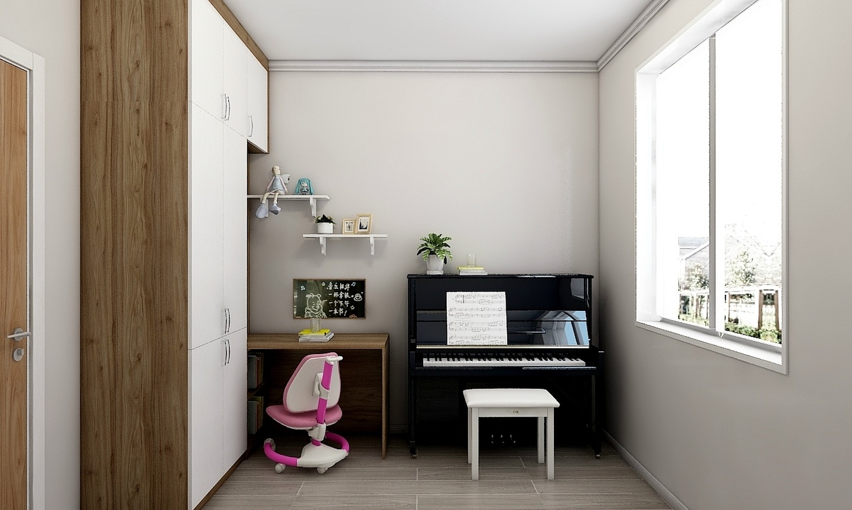 业主是教师,专门一个房间做学习,有书桌和钢琴。喜欢温馨的感觉,所以推荐做小资一点。整体明亮大气一点,然后带点绿色做跳色。