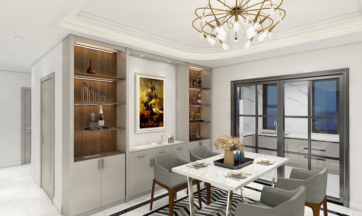 每个空间至少2张效果图+1张全案全景图展示,方案描述完整,所有空间需命名。