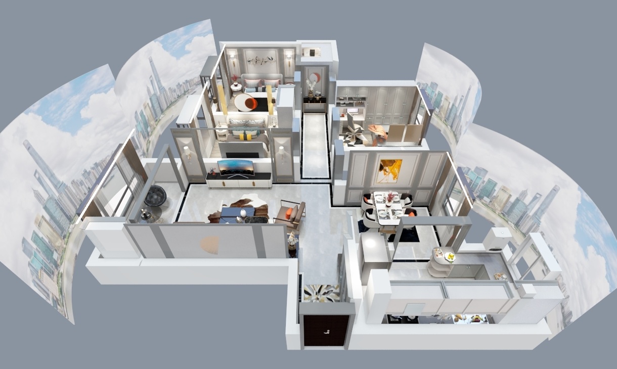 每个空间至少2张效果图+1张全案全景图展示,方案描述完整,所有空间需命名。