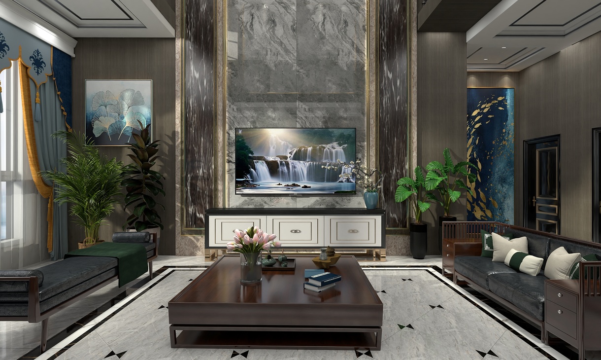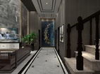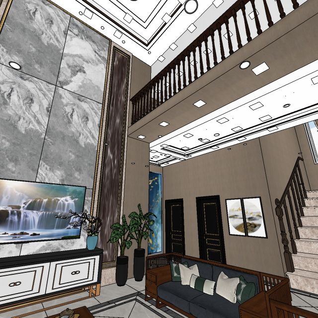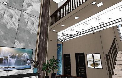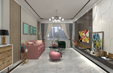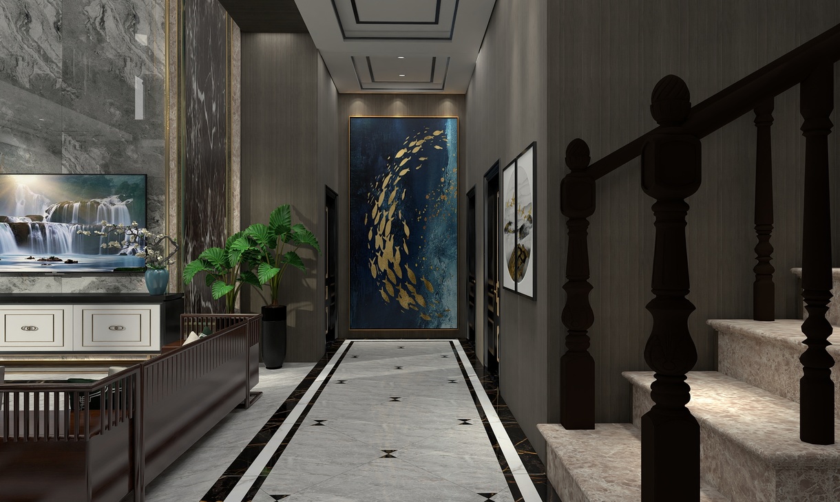 这是一个别墅复式,业主要求一层全部是瓷砖,二楼除了卫生间全部是木地板。影视墙全部是我们的东鹏大板,低调而不失奢华。