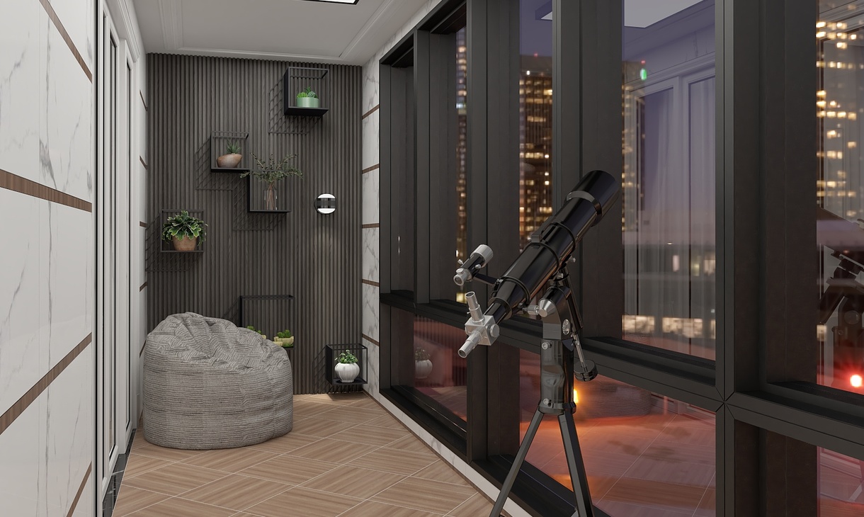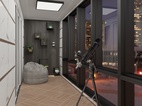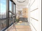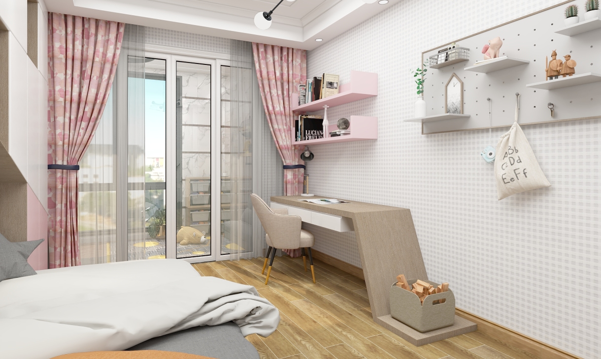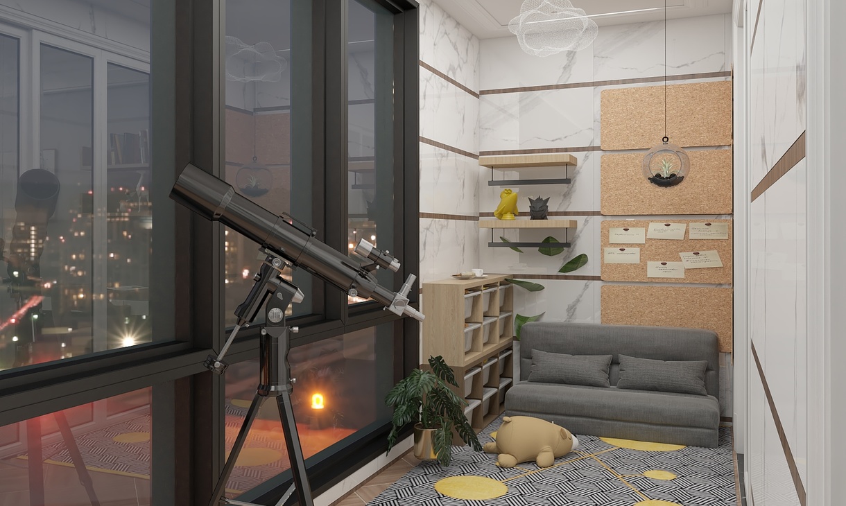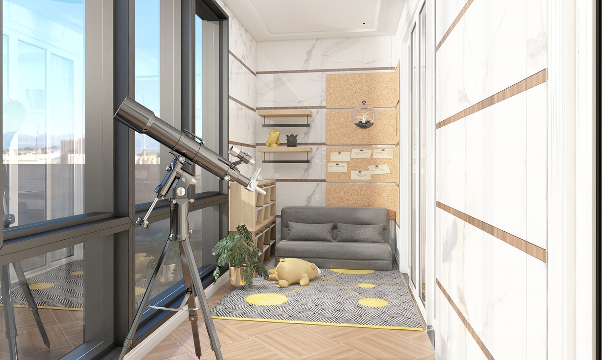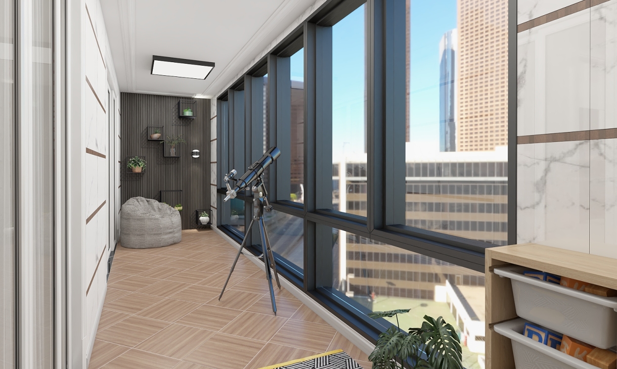 阳台划分成两个区域,一边作为儿童房的扩充区,用于孩子日常休闲,另一边作为主卧休闲区