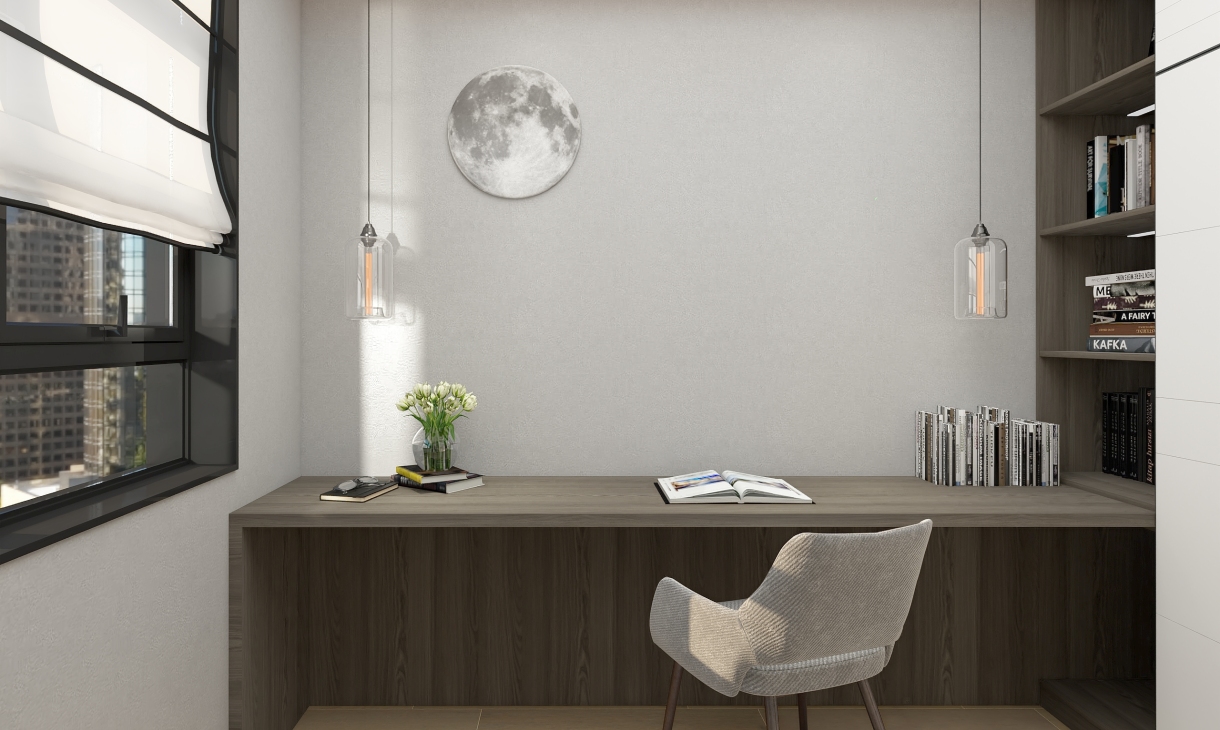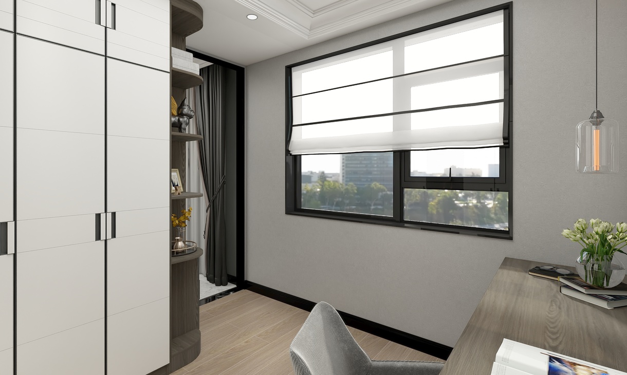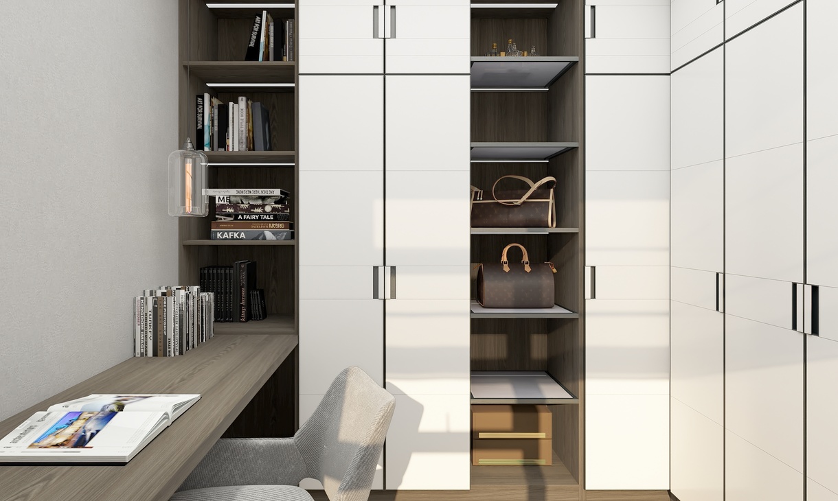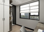 北面房间改造成多功能房,可做衣帽间也可作为书房,L型定制柜增大了储物需求