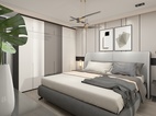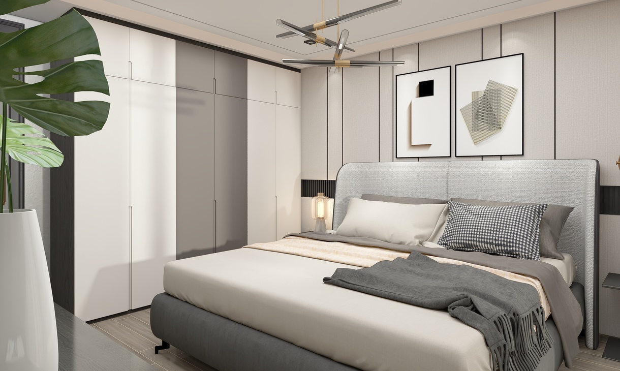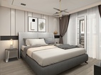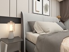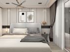 米色系的主卧,温馨雅致,将卫生间隐藏在衣柜内,保证了衣柜的整体感