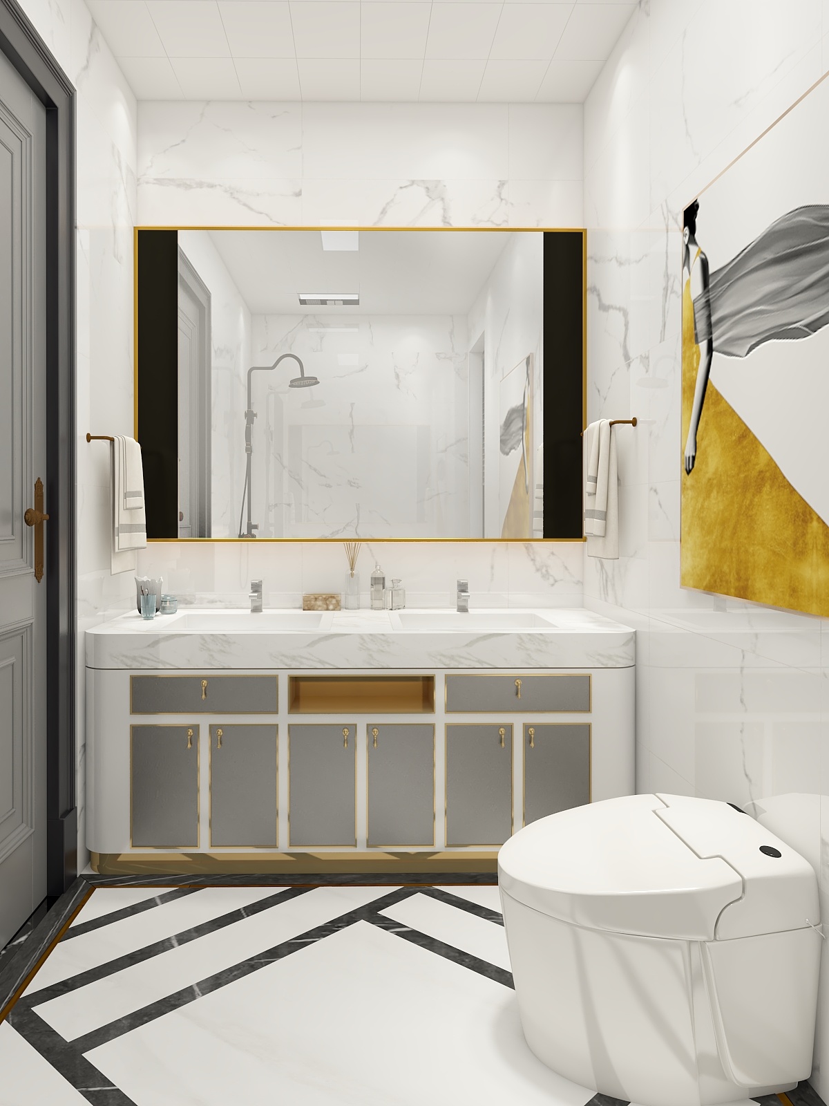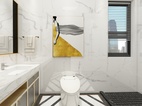主卫整体白色墙地砖,空间通透不压抑。双台盆设计满足多人使用